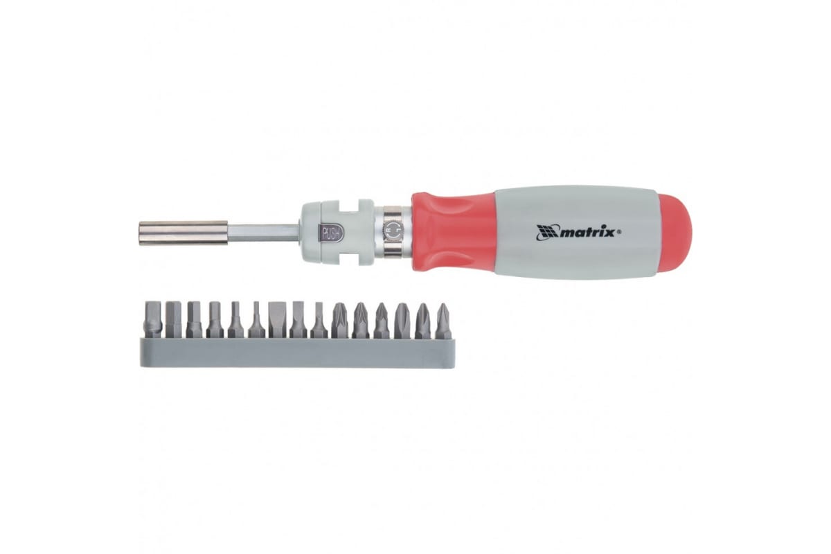 Реверсивная телескопическая отвертка с набором бит 15 шт MATRIX 11552 обеспечивает легкость завинчивания и отвинчивания различных крепежных соединений за счет специального реверсивного механизма, который избавляет от необходимости перехватывания инструмента в ладони. Телескопическая конструкция позволит проводить ремонтные или монтажные работы в труднодоступных местах.