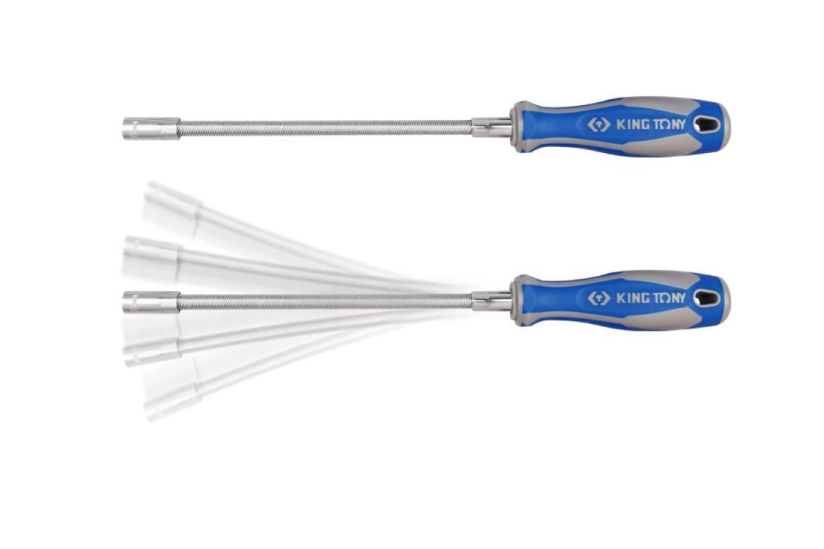 Гибкая торцевая отвертка для хомутов 5 мм, 300 мм KING TONY 1453-05 применяется в местах с ограниченным доступом. Модель имеет гибкий стержень, что обеспечивает удобство в эксплуатации.