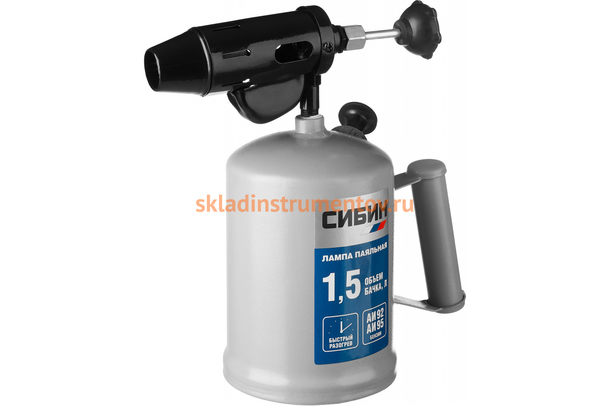 Паяльная стальная лампа СИБИН 1,5 л 40670 подойдет для разогрева труб и выполнения аналогичных работ.