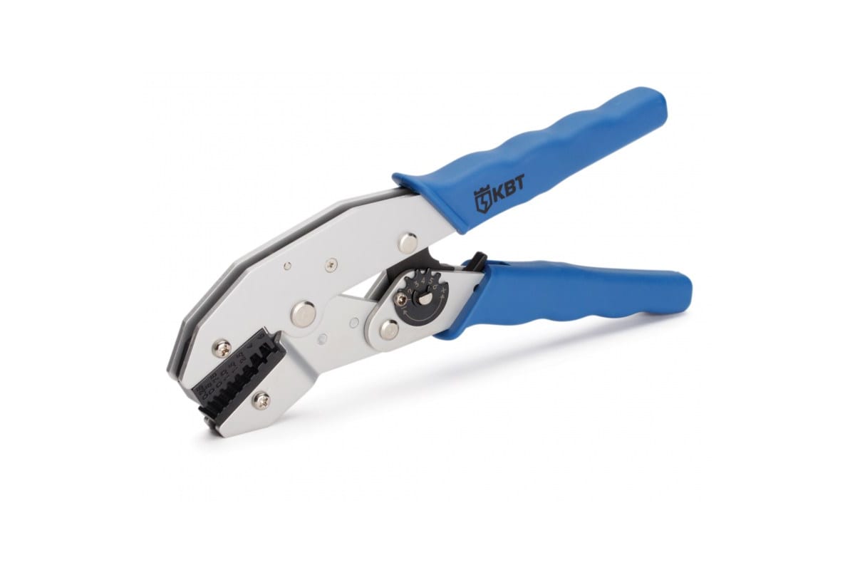 Пресс-клещи КВТ CTA-01 55920 предназначены для опрессовки изолированных наконечников и разъемов НКИ, НВИ, НИК, НШКИ, НШПИ, ГСИ, РППИ-М, РПИ-П, РПИ-М, РШИ-П, РШИ-М, РПИ-О и РПИ-НТ. Они имеют усиленную трехшарнирную конструкцию, обладающую высоким рабочим ресурсом. Пресс-клещи оснащены храповым механизмом, который обеспечивает блокировку обратного хода до завершения цикла опрессовки. Благодаря небольшому весу и компактным размерам работать с инструментом просто и удобно.