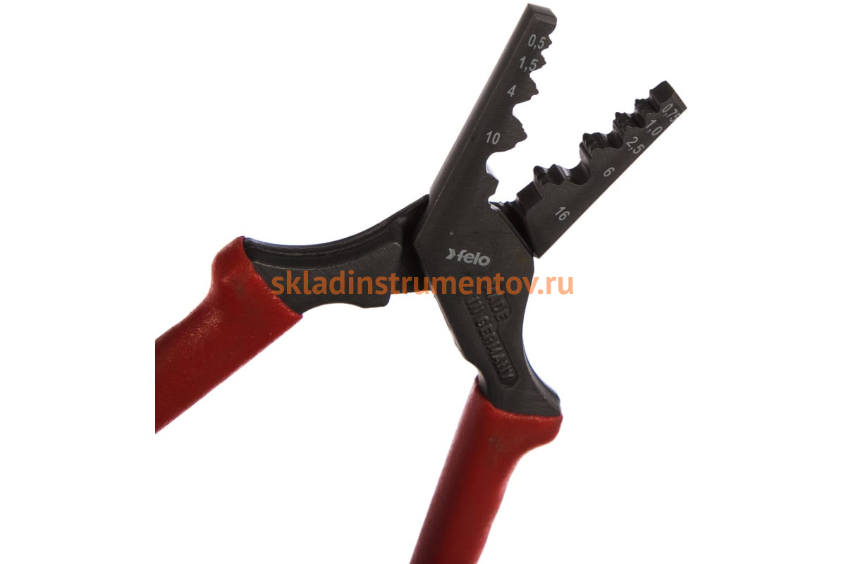 Клещи для обжима наконечников Felo 0,5 – 16 мм 59231940 относятся к инструменту профессионального класса. Изделие применяется для создания беспаечных электрических соединений согласно DIN, опрессовки трапециевидного профиля для надежного соединения гильзы и провода.