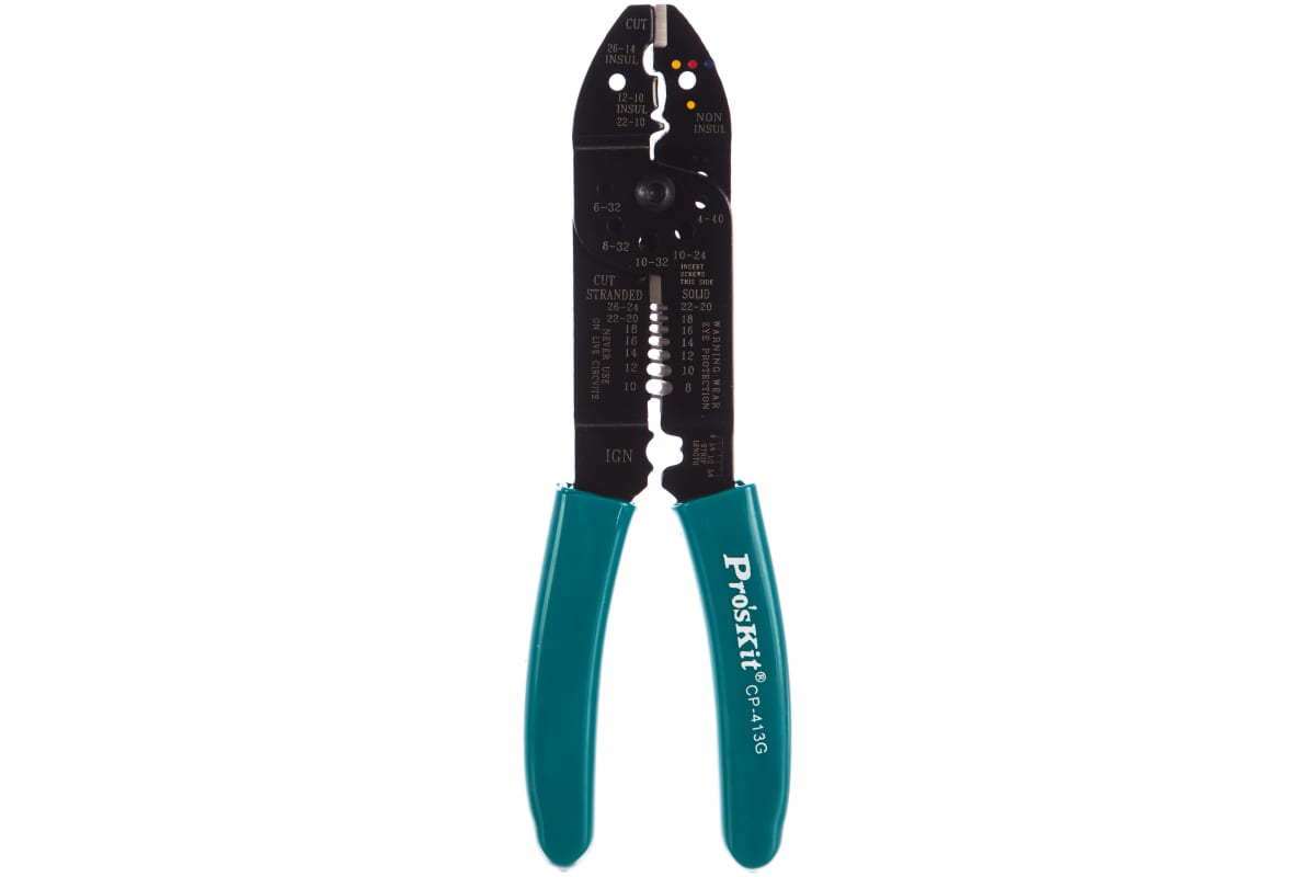 Инструмент для зачистки и обжима ProsKit CP-413G 00268397 подойдет для выполнения сложных серийных электротехнических работ. Использование ПВХ накладок на рукоятках обеспечивает минимальное скольжение ладоней.