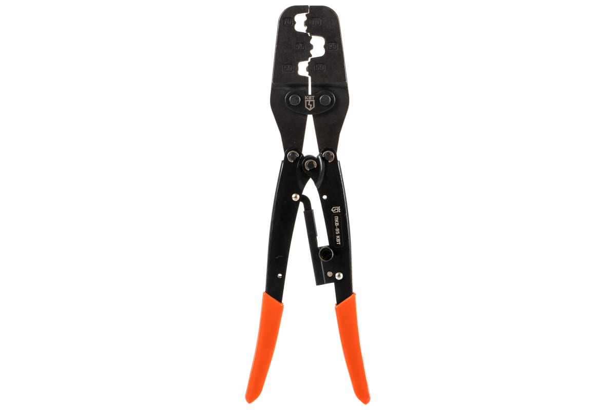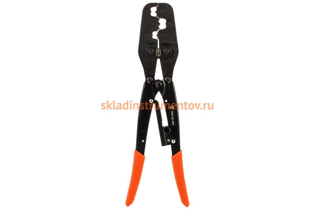 Пресс-клещи КВТ ПКВ-95 74597 является профессиональным инструментом для опрессовки одинарных и двойных втулочных наконечников на многожильные медные провода. Данная модель работает с тремя типоразмерами НШВИ, НШВ: 50, 70 и 95 мм². За счет храпового механизма осуществляется полный цикл опрессовки.