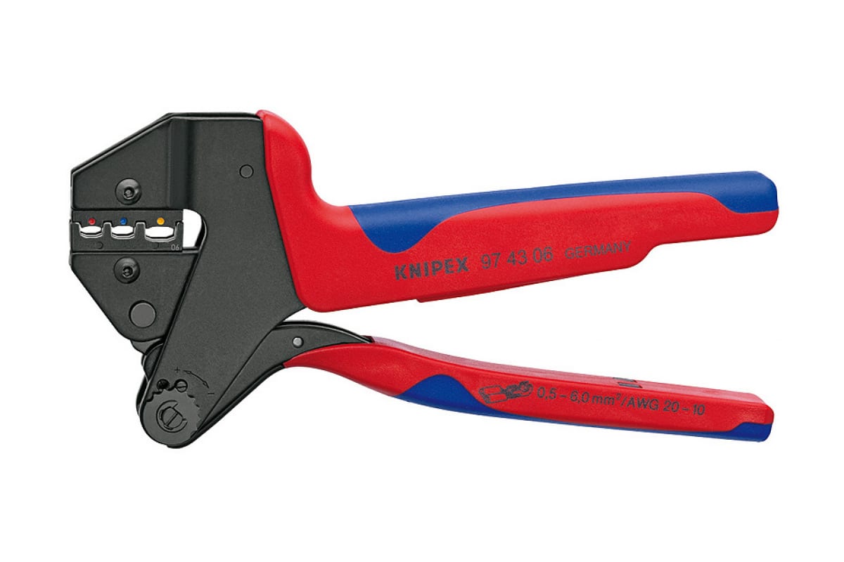 Ручной обжимник KNIPEX KN-974306 - профессиональный инструмент с новейшей техникой обжима. Выполнен из долговечного материала, прошедшего закалку. Двухкомпонентные чехлы способствуют безопасной работе. Инструмент имеет встроенный профиль обжима и выполняет качественную опрессовку изолированных штекеров.