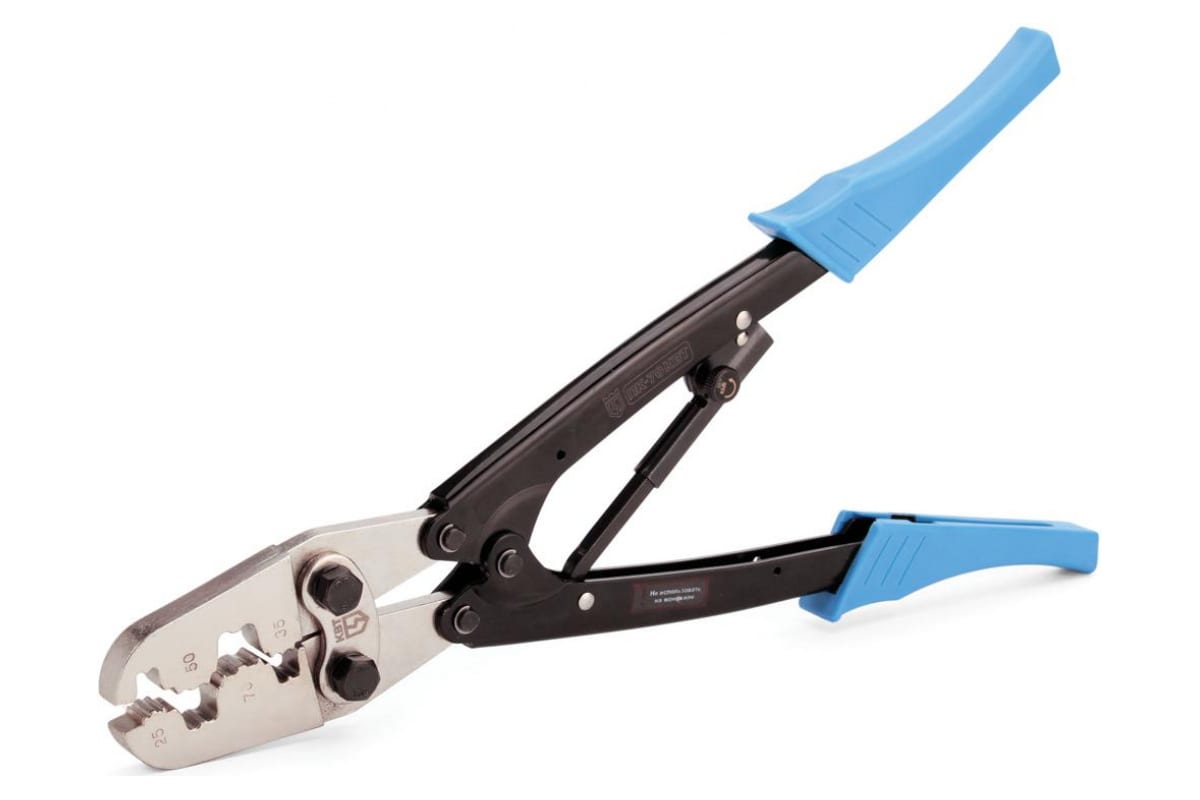 Пресс-клещи КВТ ПКВ-70 57875 используется только для обжима коннекторов на многожильных проводах из меди. Инструмент подходит для проводов, имеющих диапазон сечений НШВИ, НШВ: 25–70 мм² и НШВИ(2): 10-16 мм². Изделие обеспечивает трапециевидную опрессовку путем вдавливания. Конструкция полностью выполнена из стали, дополнительно усилена и обработана защитным никелевым составом, что значительно повышает рабочий ресурс пресс-клещей.