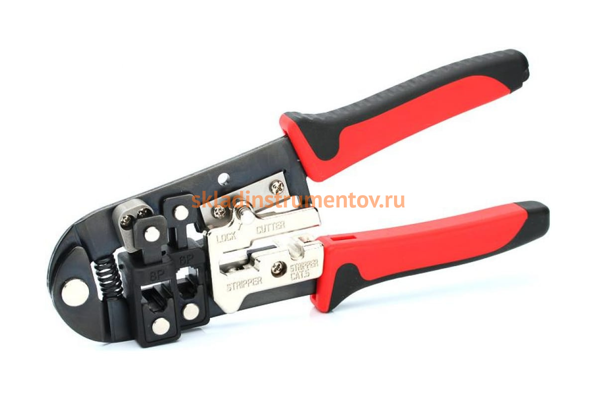 Пресс-клещи для RJ разъемов КВТ JT-02 55930 представляют собой многофункциональный инструмент "3в1", который обеспечивает обжим разъемов RJ, снятие изоляции с плоских телефонных проводов с фиксированной длиной зачистки, с круглых проводов типа UTP, STP, а также резку проводов. Приспособление оснащено механизмом разблокировки и возвратной пружиной. Защита от порезов обеспечивается за счет предохранительной панели.