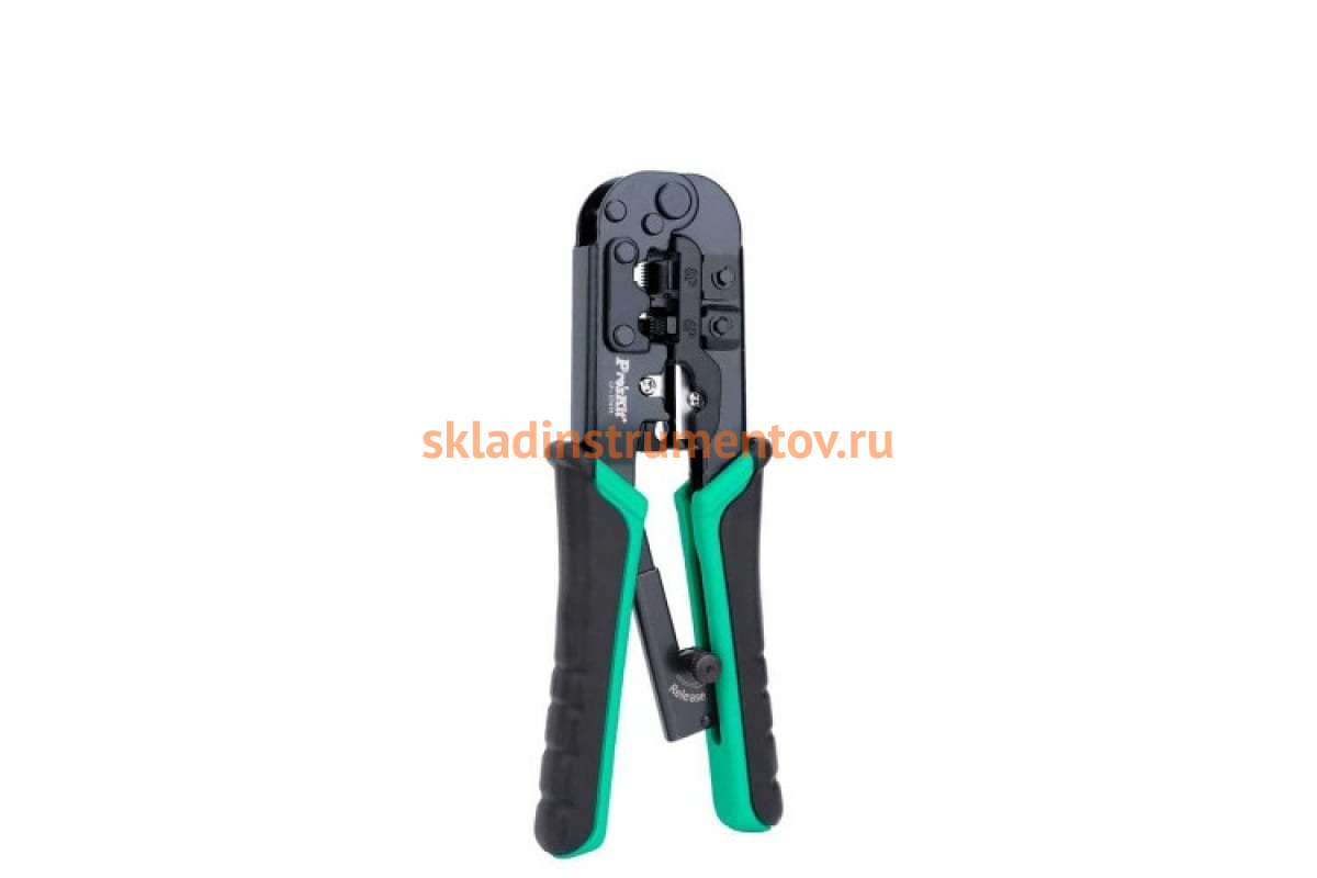 Универсальные клещи для обжима ProsKit CP-376TR 00187454 подойдет для коннекторов формата Western. Инструмент оснащается удобными рукоятками с двухкомпонентными накладками.