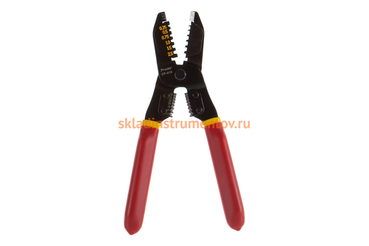 Клещи для обжима и зачистки ProsKit CP-416 00324204 - удобный и надежный инструмент, при помощи которого можно резать и зачищать провода, а также обжимать наконечники.