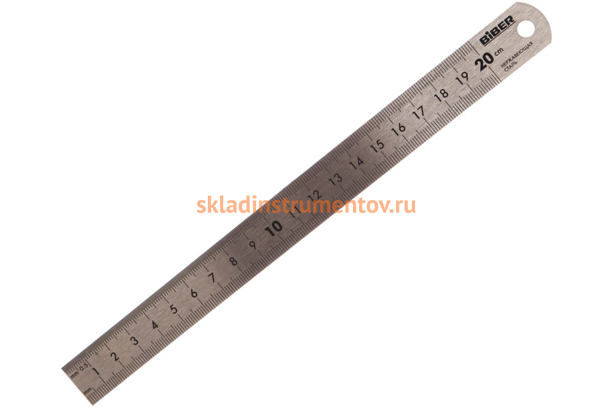 Линейка 200мм (нержавеющая сталь, двухсторонняя шкала) Biber 40161 тов-172035