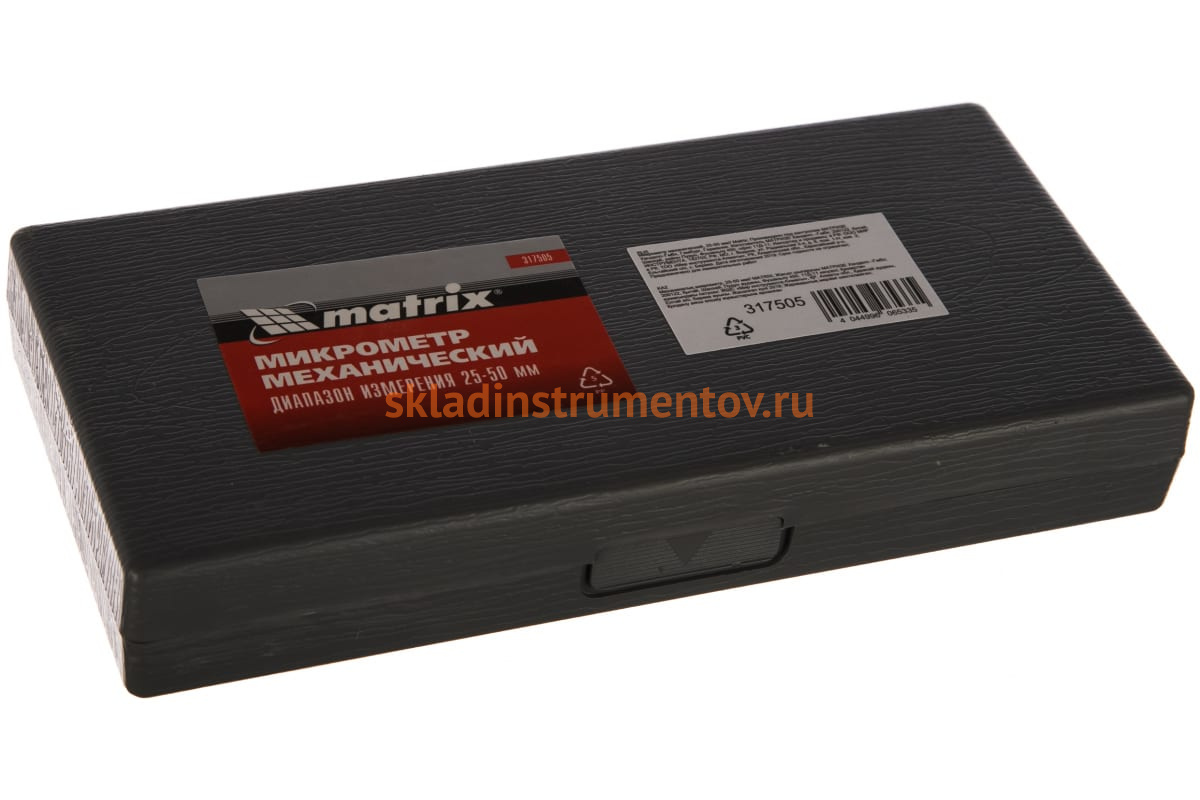 Механический микрометр 25-50 мм MATRIX 317505 - высокоточный инструмент, который выполнен из инструментальной стали.