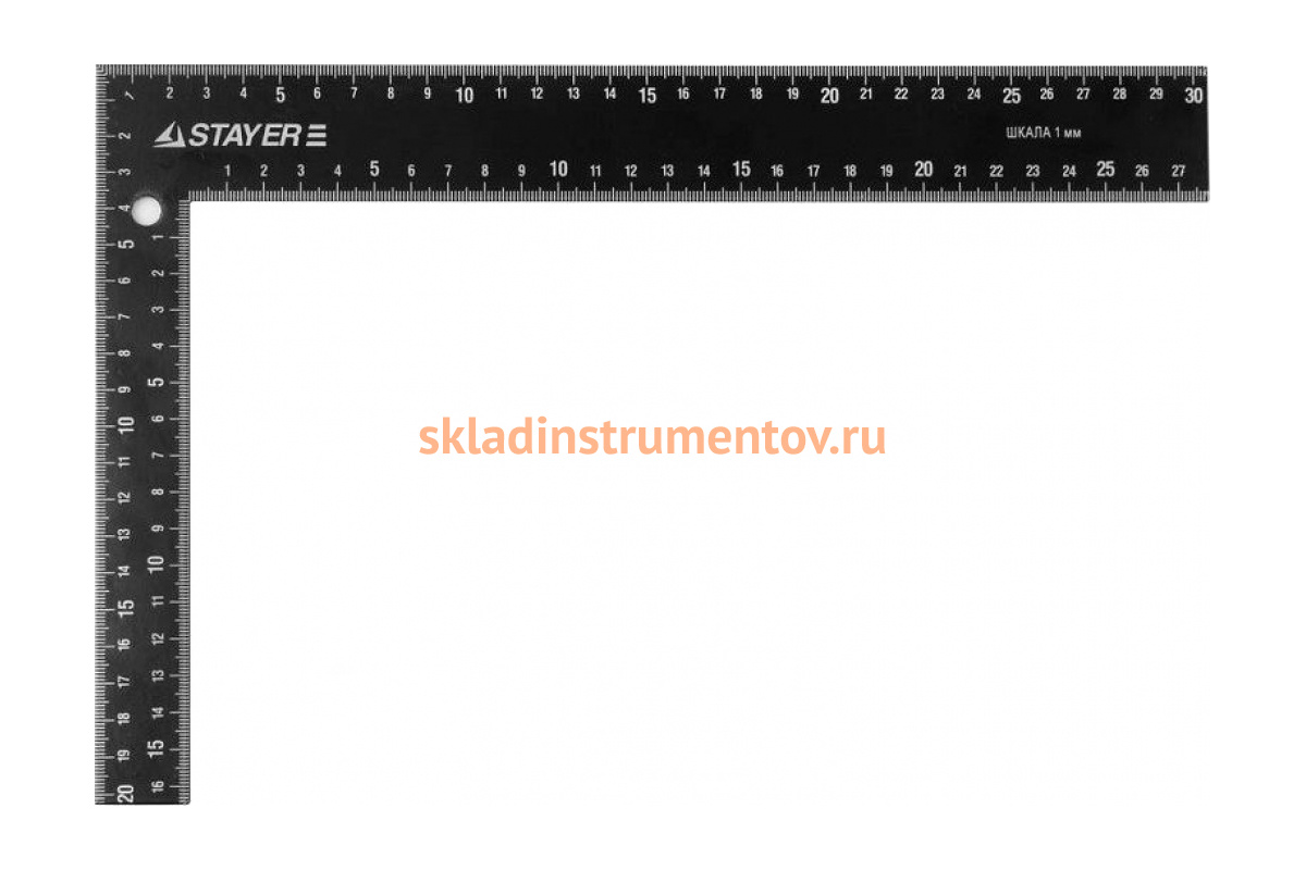 —Столярный угольник STAYER стальной цельнометаллический шкала шаг 1 мм крашенная 300x200 мм 3435-30