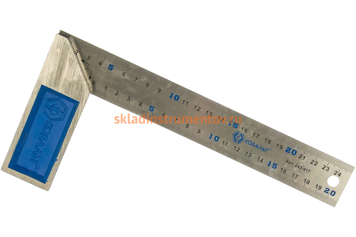 Столярный угольник 250мм, нерж.сталь, чугунное основание КОБАЛЬТ 243-417 - прочный, надежный и долговечный ручной измерительный инструмент, который служит для проведения линейных замеров, разметочных работ и выверки прямых углов. Изделие широко используется в сфере столярно-слесарных работ. Имеет отверстие в полотне для удобства хранения в подвесном виде.