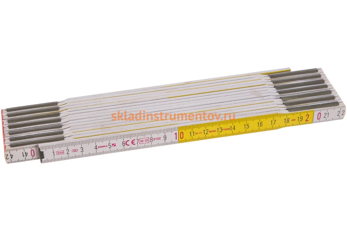Складной деревянный метр STABILA Тип 617 3м х 16мм 01231 используется при ремонтных, столярных и строительных работах. Его части - пластины из дерева с метрической шкалой. Шарниры выполнены из высокопрочной пружинной стали. Складная конструкция обеспечивает простоту транспортировки и хранения метра. Инструмент получил знак качества СЕ и метрологическое обозначение, а также сертификат испытания модели Европейского Союза.