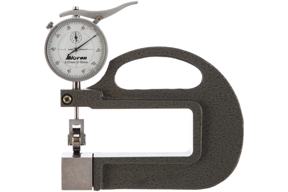 Роликовый толщиномер Micron ТРЛ 0-10 0.01 МИК 77958 подходит для измерения толщины различных листовых материалов: кожи, резины, фанеры и др.