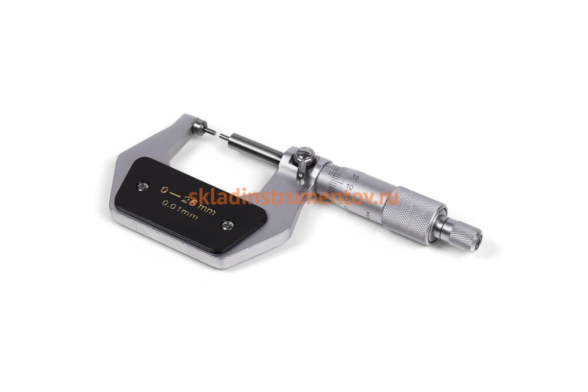 Микрометр с малыми измерительными губками 25 мм, 0.01 мм ЧИЗ МК-МП 51118 представляет собой классический измерительный инструмент высокой точности. С его помощью можно определять толщину материала. Погрешность составляет 0.002 мм.