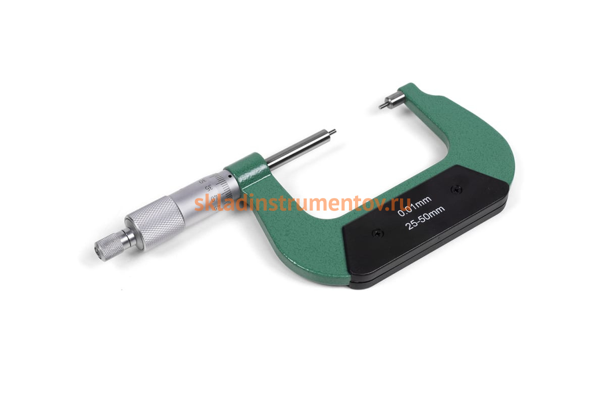 Микрометр с малыми измерительным губками 50 мм, 0.01 мм ЧИЗ МК-МП 51119 используется для измерения толщины деталей в диапазоне 25-50 мм. Погрешность не превышает 0.0025 мм, что обеспечивает высокую точность измерений плотных материалов.