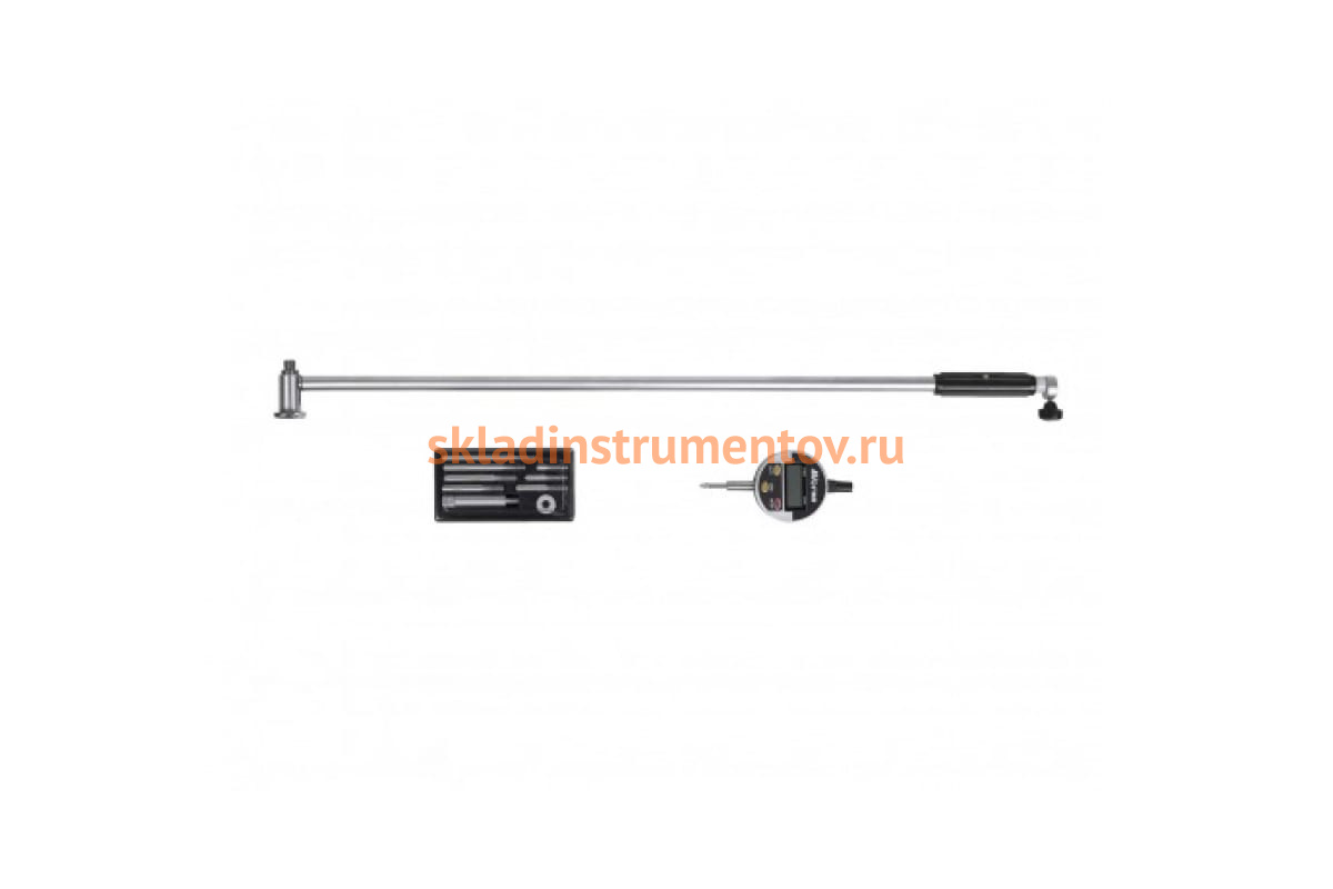 Корпус нутромера защищен теплоизолирующей втулкой. Благодаря сменным вставкам, доступен диапазон измерений 250-450 мм. Инструмент снабжен центрирующим мостиком для совмещения линии измерения с осевой плоскостью отверстия .