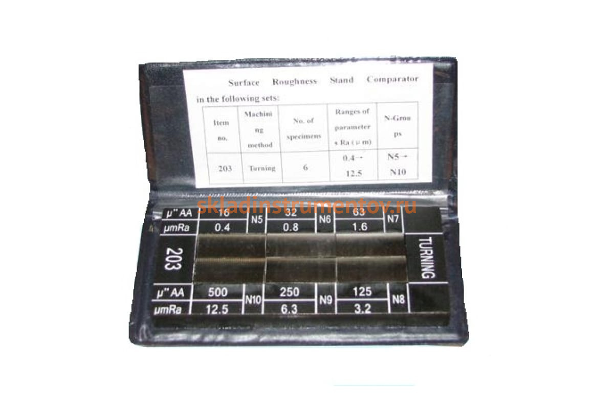Набор образцов шероховатости поверхности из 6шт, Ra 0.4 - 12.5 GRIFF D125011 разработан для визуального и тактильного сравнения поверхностей, с различным качеством и точностью обработки. В наборе имеются образцы, полученные путем точения.