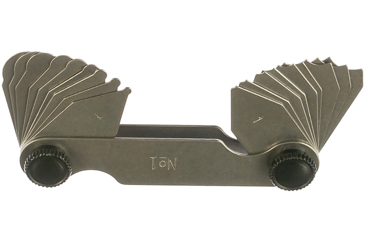 Шаблон позволяет осуществить измерение методом подбора подходящего щупа и прикладыванием к поверхности. Пластины выполнены из стали, имеют зубцы толщиной 1 мм.