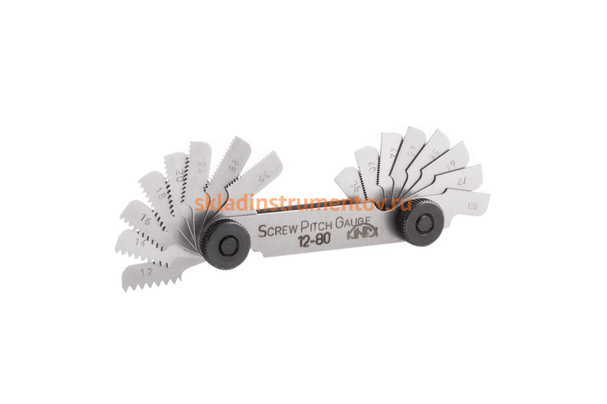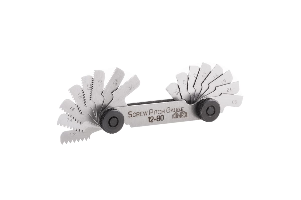Резьбомер Kinex UNF 12-80Tpi 16шт 1148-02-016 для измерения шага дюймовой американской резьбы UNF (Unified Thread Standard). Дюймовая резьба с крупным шагом и углом профиля 60 град. Резьбомер имеет вид сдвоенной обоймы металлических пластин с эталонным профилем.