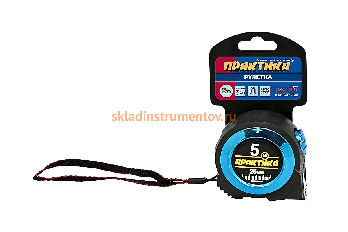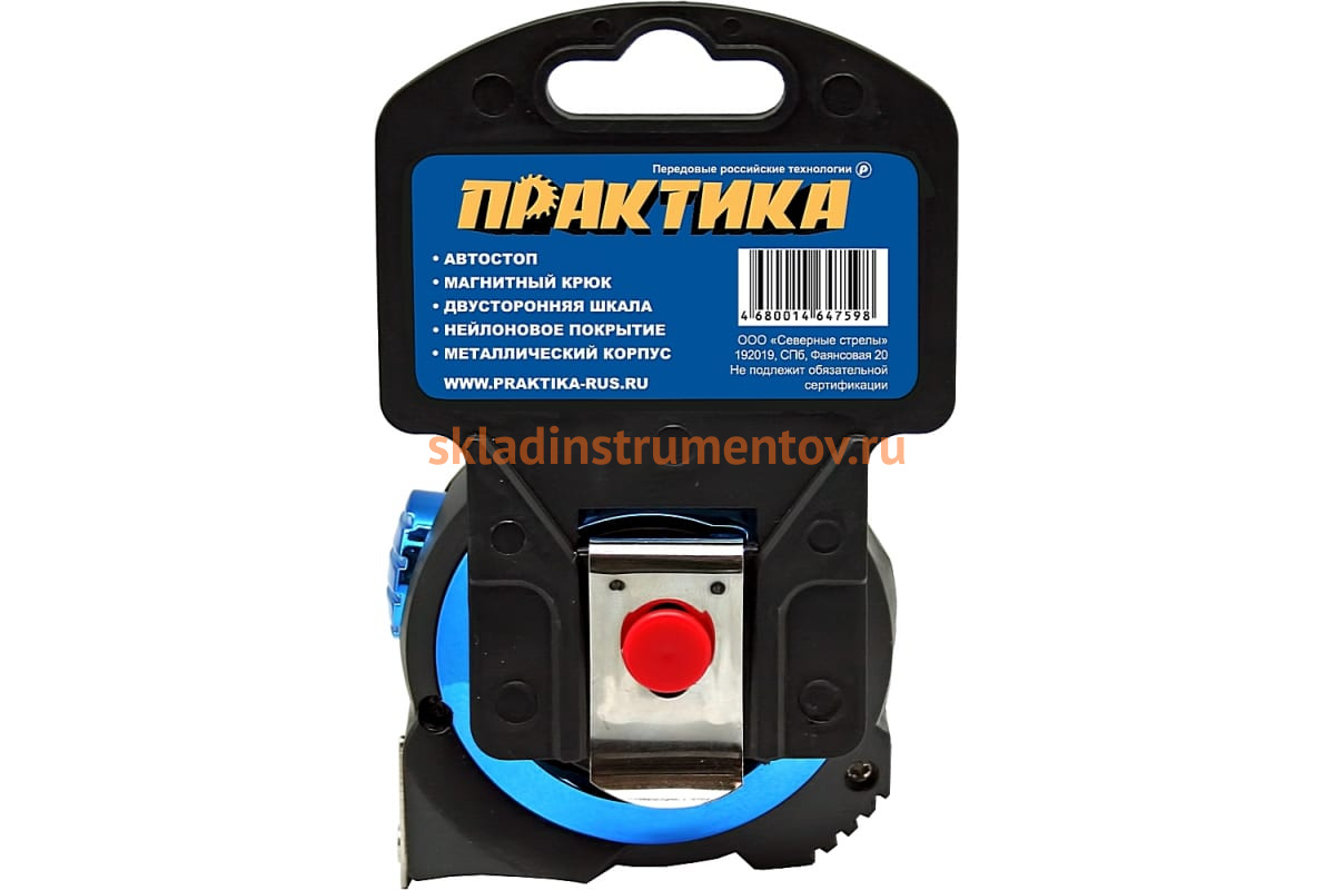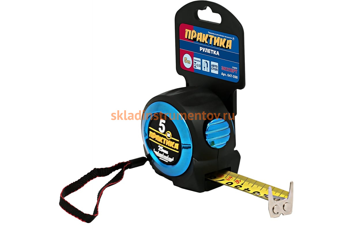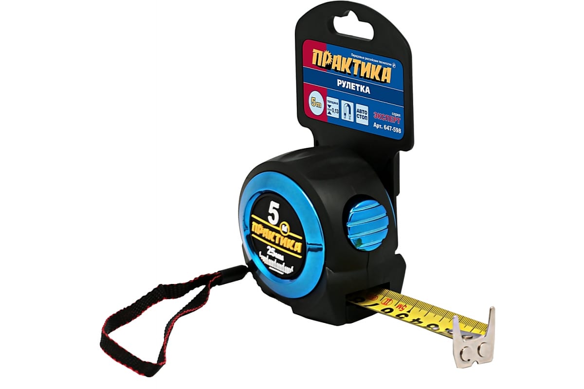 Рулетка ПРАКТИКА 5 м 647-598 используется в строительстве и ремонте для проведения измерений и разметок. Конструкция состоит из стальной ленты с нейлоновым покрытием, которая расположена в обрезиненном пластике. Изделие оснащено магнитом и автостопом. Размер - 25ммх5м.