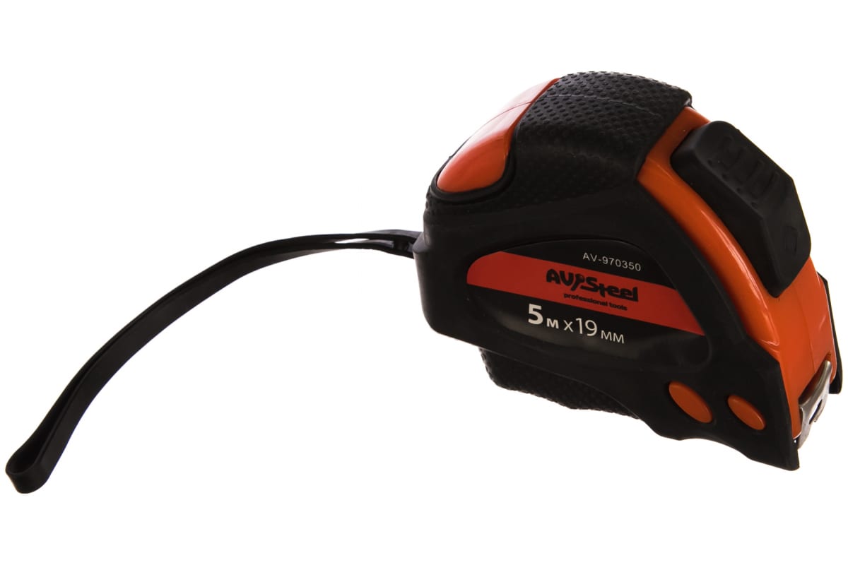 Рулетка, обрезиненный корпус 5мх19мм с автостопом AV Steel AV-970350 - качественный и надежный инструмент.