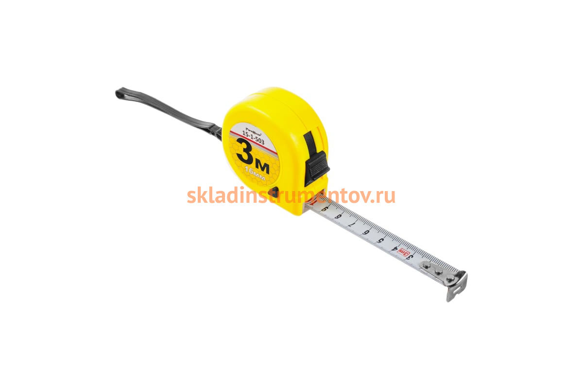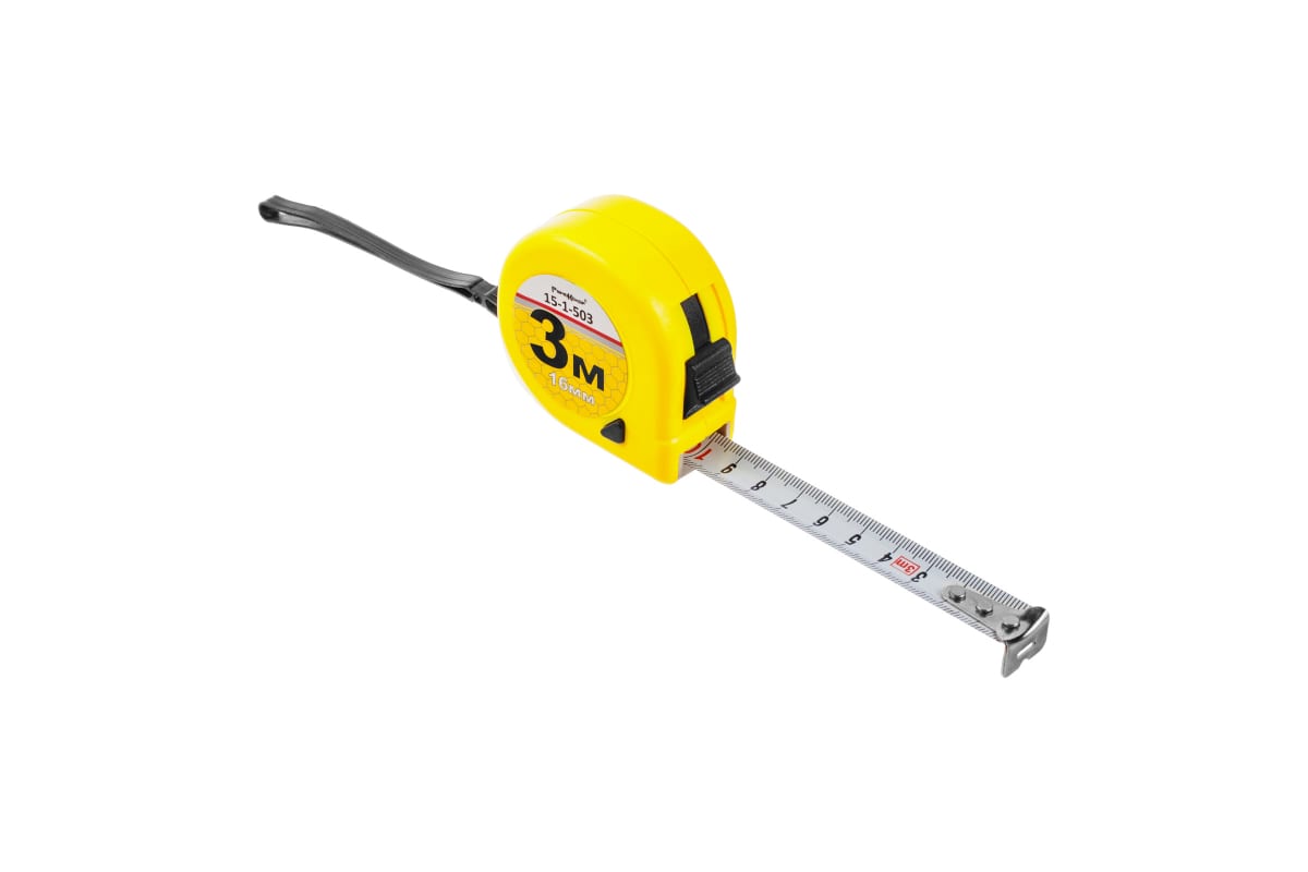 Рулетка РемоКолор 15-1-503 - компактный измерительный инструмент для использования при строительных, ремонтных, отделочных работах. Конструкцией предусмотрено две кнопки фиксации ленты и усиленная возвратная пружина. Стальная 3-метровая лента с тройным покрытием размещается в прочном корпусе из ABS-пластика. Инструмент практичен и удобен в применении.