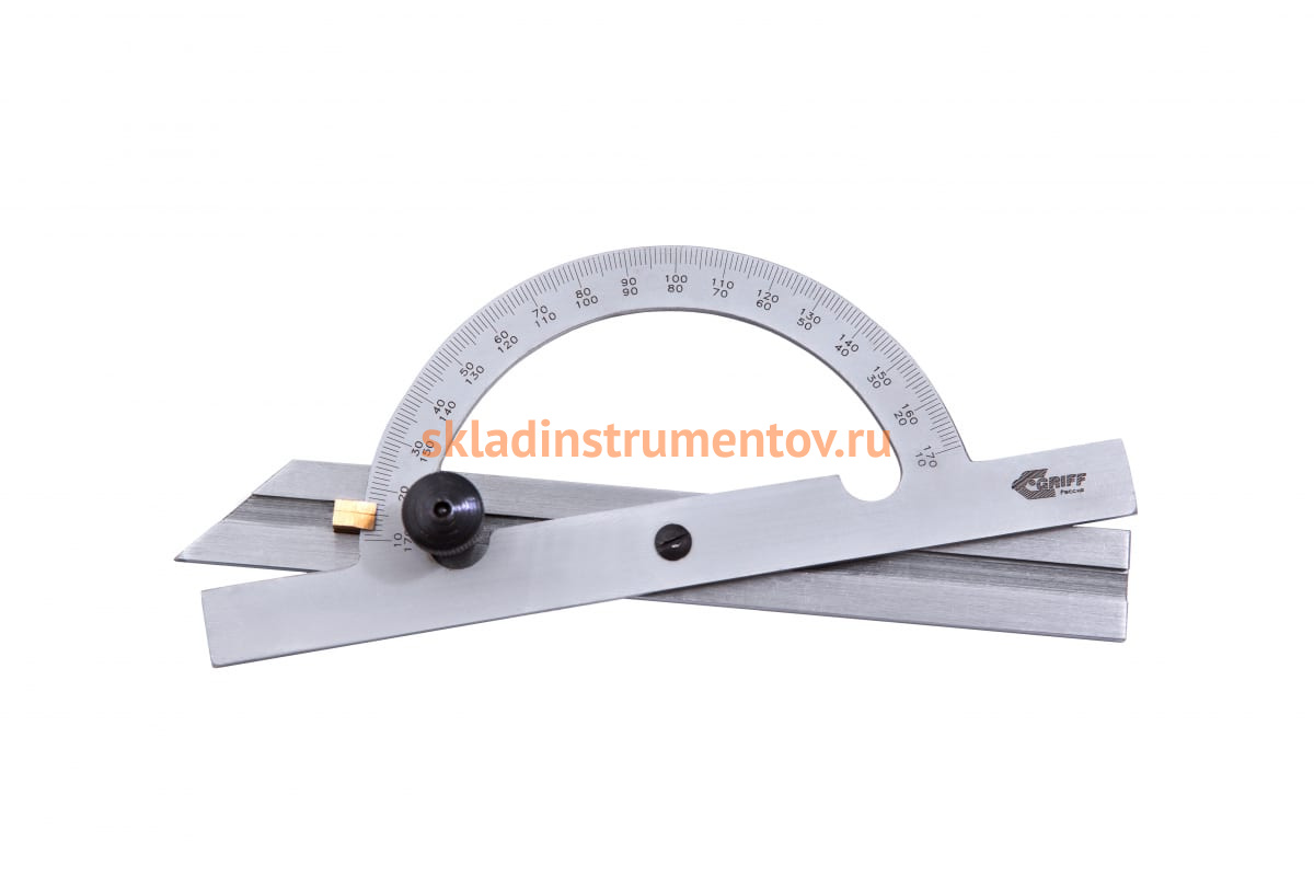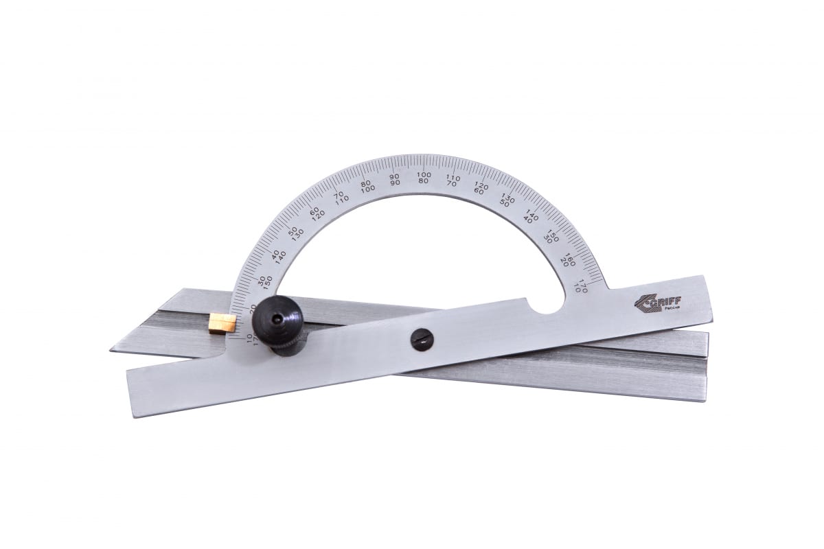 Угломер-транспортир GRIFF 0-180, d=200мм, L=400мм D143015 предназначен для измерения и разметки углов при выполнении столярных и слесарных работ.