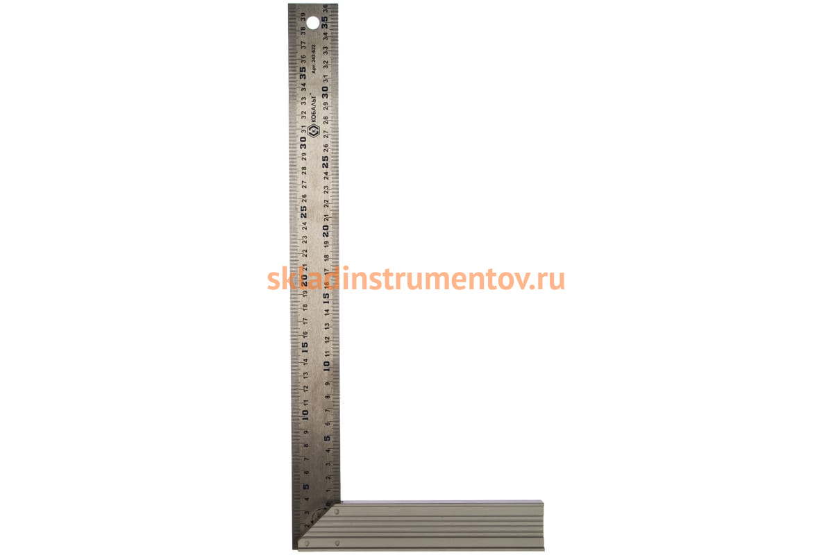 Столярный угольник 400мм, нерж.сталь, алюминиевое основание КОБАЛЬТ 243-622 позволяет производить разметочные, измерительные и проверочные работы. Является стальным шаблоном угла под 90 градусов. Угольник широко распространен для эксплуатации в области столярных и слесарных работ. Мерное полотно оснащено отверстием для удобства подвесного хранения.