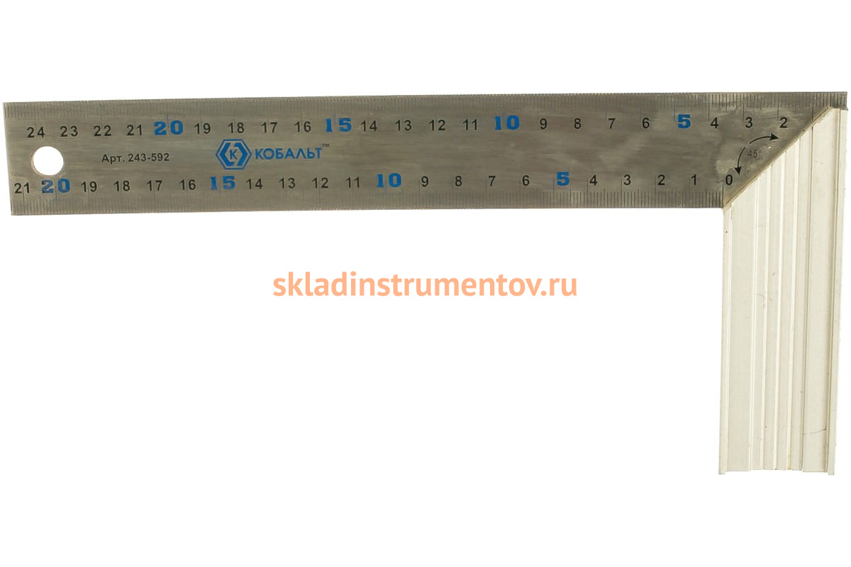 Столярный угольник 250мм, нерж.сталь, алюминиевое основание КОБАЛЬТ 243-592 представляет собой прочный измерительный инструмент с облегченной конструкцией, который используется для выполнения замеров, нанесения разметки, и проверки углов у различных заготовок. Мерное полотно угольника имеет отверстие для подвесного хранения.