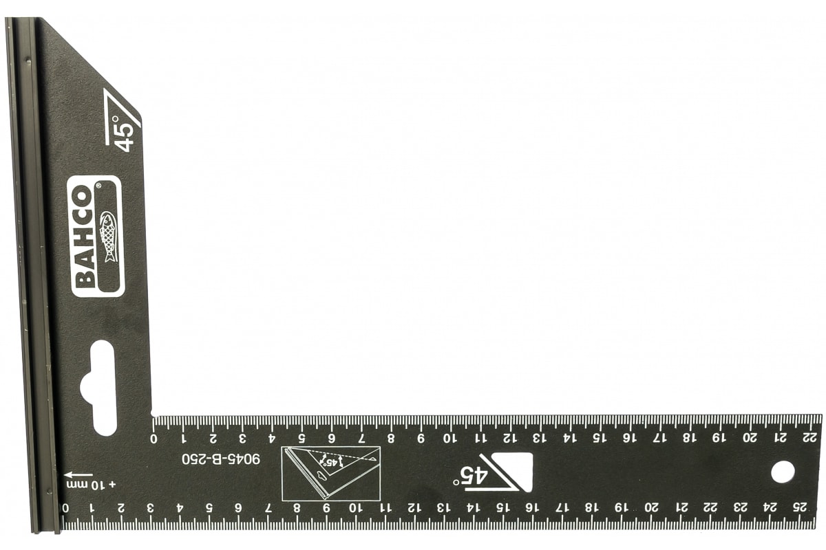 Угольник Bahco 9045-B-400 - измерительный инструмент для проверки угла в 90 градусов и выполнения разметки. Сделан из целого куска высококачественной стали и покрыт черным антикоррозионным слоем. Угольник хорошо сбалансирован. Полотно имеет двухстороннюю разметку, что упрощает работу с инструментом.