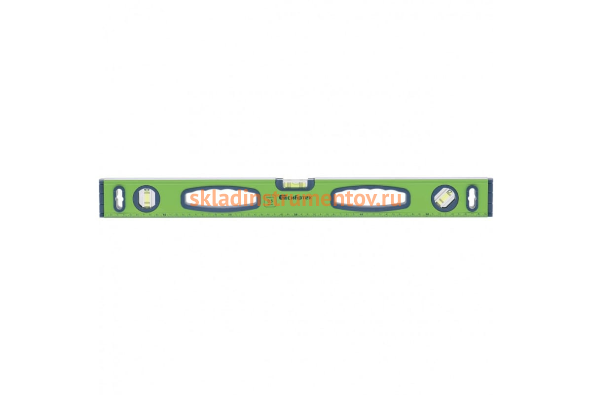 Алюминиевый фрезерованный уровень СИБРТЕХ УСМ-0,5-1500 34119 подойдет для работы с вертикальными и горизонтальными поверхностями.