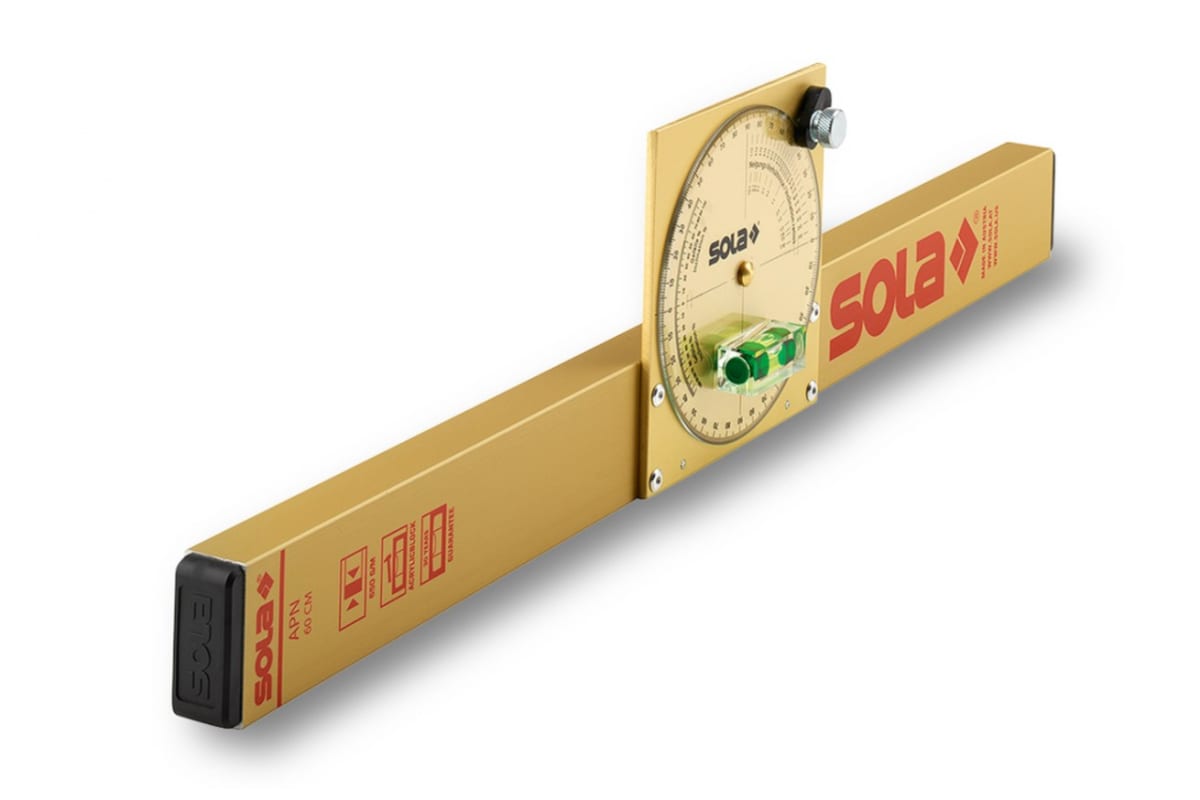 Уровень угломер в сумке, 60 см SOLA APN 60 T 01480701 оснащается высокоточным глазком и поворотным диском со шкалой. Читаемость в полумраке обеспечивается благодаря светоотражающей подложке. Специальные колпачки на концах прибора поглощают удары в случае падения.