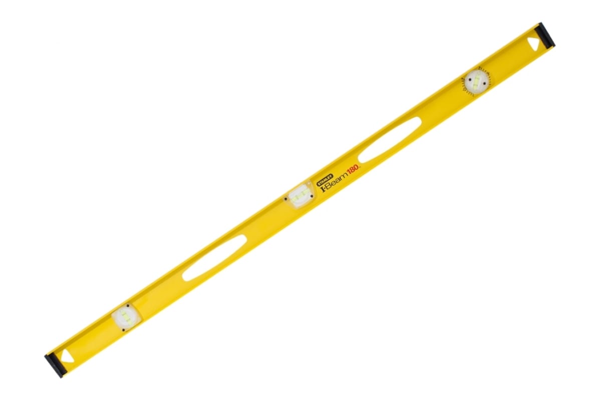 Уровень 120 см Stanley I BEAM180 1-42-923 используется в строительстве для выверки отклонений обширных поверхностей по горизонтали, вертикали и другим произвольным углам. Такие качества достигаются за счет наличия трех колб, одна из которых является поворотной. Изделие обладает высоким рабочим ресурсом благодаря прочности алюминиевого корпуса с двутавровым профилем. Для сохранения точности пузырьковых колб при падениях на торцах уровня предусмотрены специальные накладки.