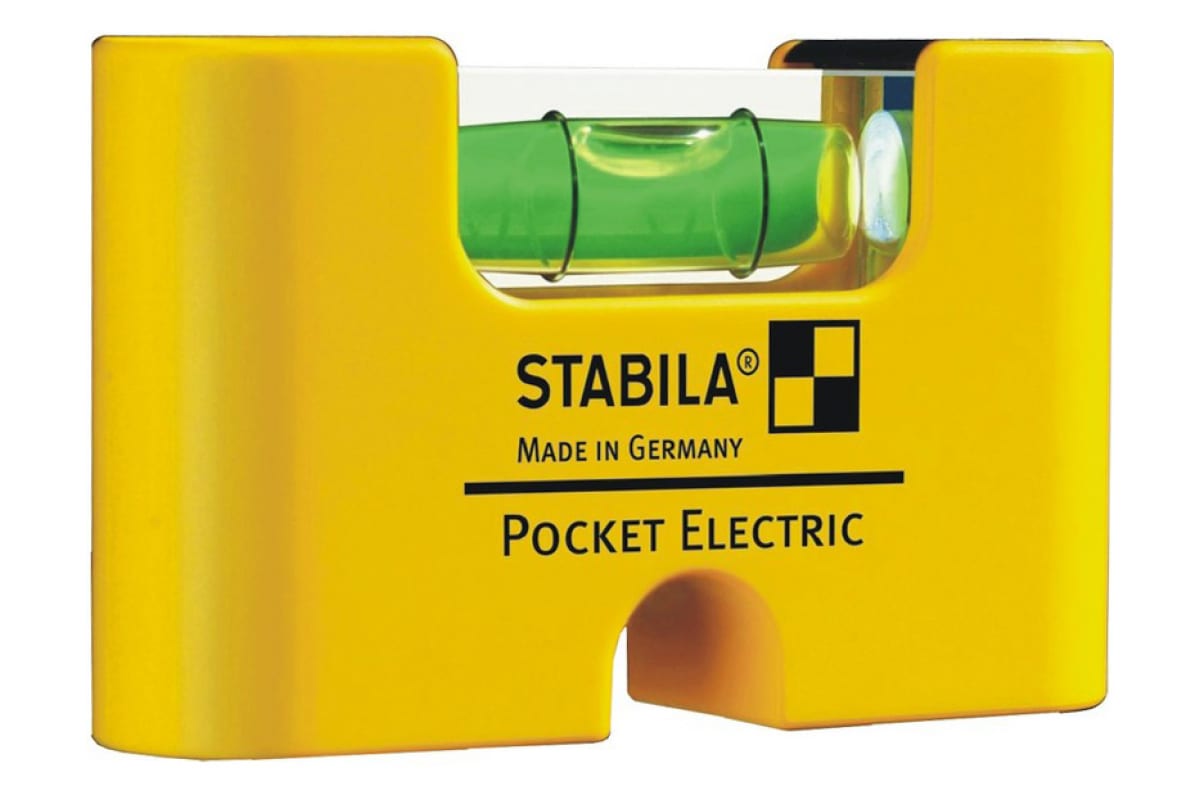 Уровень STABILA тип Pocket Electric 17775 - практичный и миниатюрный инструмент для электрика. Позволяет быстро выполнить выравнивание выключателей и электрических розеток. Благодаря магниту крепиться к металлической поверхности. Конструкция отличается наличием паза для ввода отвертки.