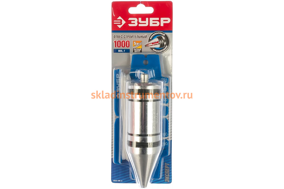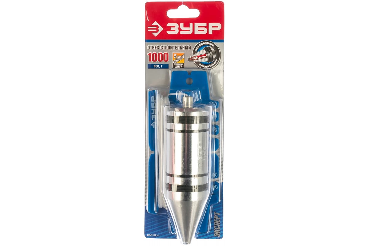 Строительный отвес со шнуром и безопасным наконечником, 1000г Зубр "ЭКСПЕРТ" 06347-100_z01 позволяет определить вертикаль при проведении строительных или отделочных работ.