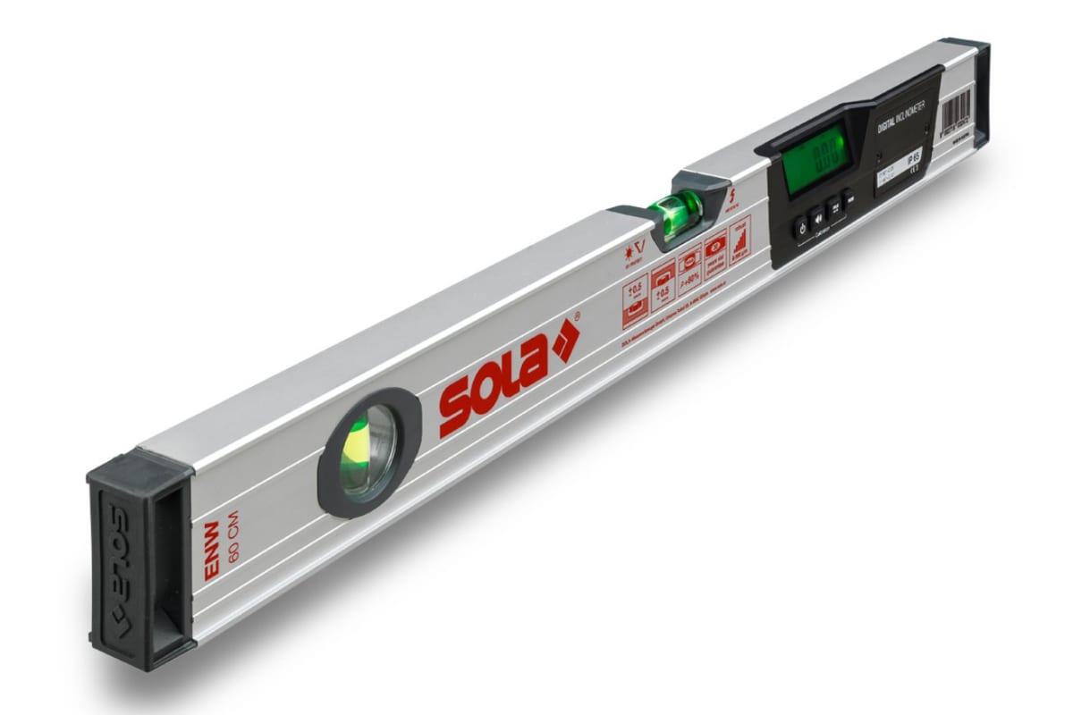 Электронный уровень-угломер 60 см, защита IP65 SOLA ENW 60 T 01720801 сочетает в себе два приспособления - угломер и уровень. Светоотражающая подложка обеспечивает отличную читаемость в затемненном помещении. Специальные колпачки на концах прибора поглощают удары в случае падения.