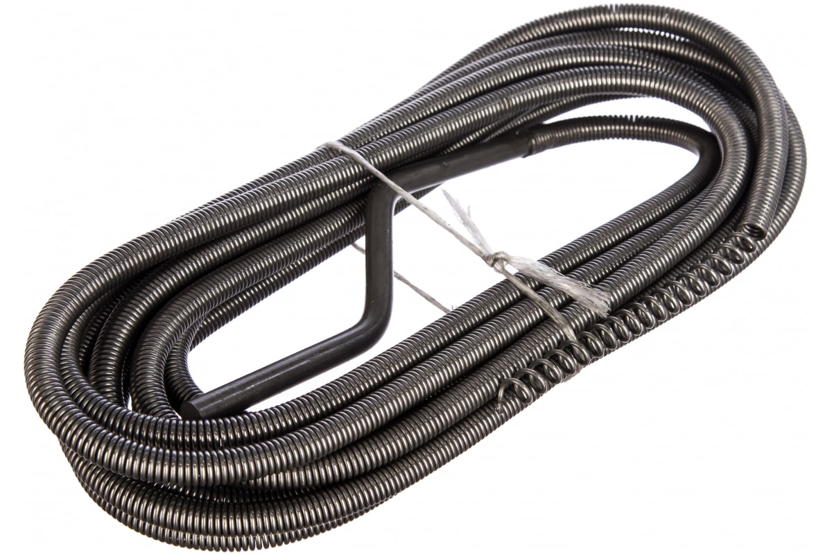 Сантехнический трос 5м, 9мм СИБИН 51909-050 имеет спиральный наконечник, который повышает качество прочистки даже самых трудных и застарелых засоров в системах канализации, водостоках и пр. Приспособление легко справляется с удаленными засорами, где традиционные химические средства и вантузы не эффективны. Материал троса - качественная пружинная сталь.