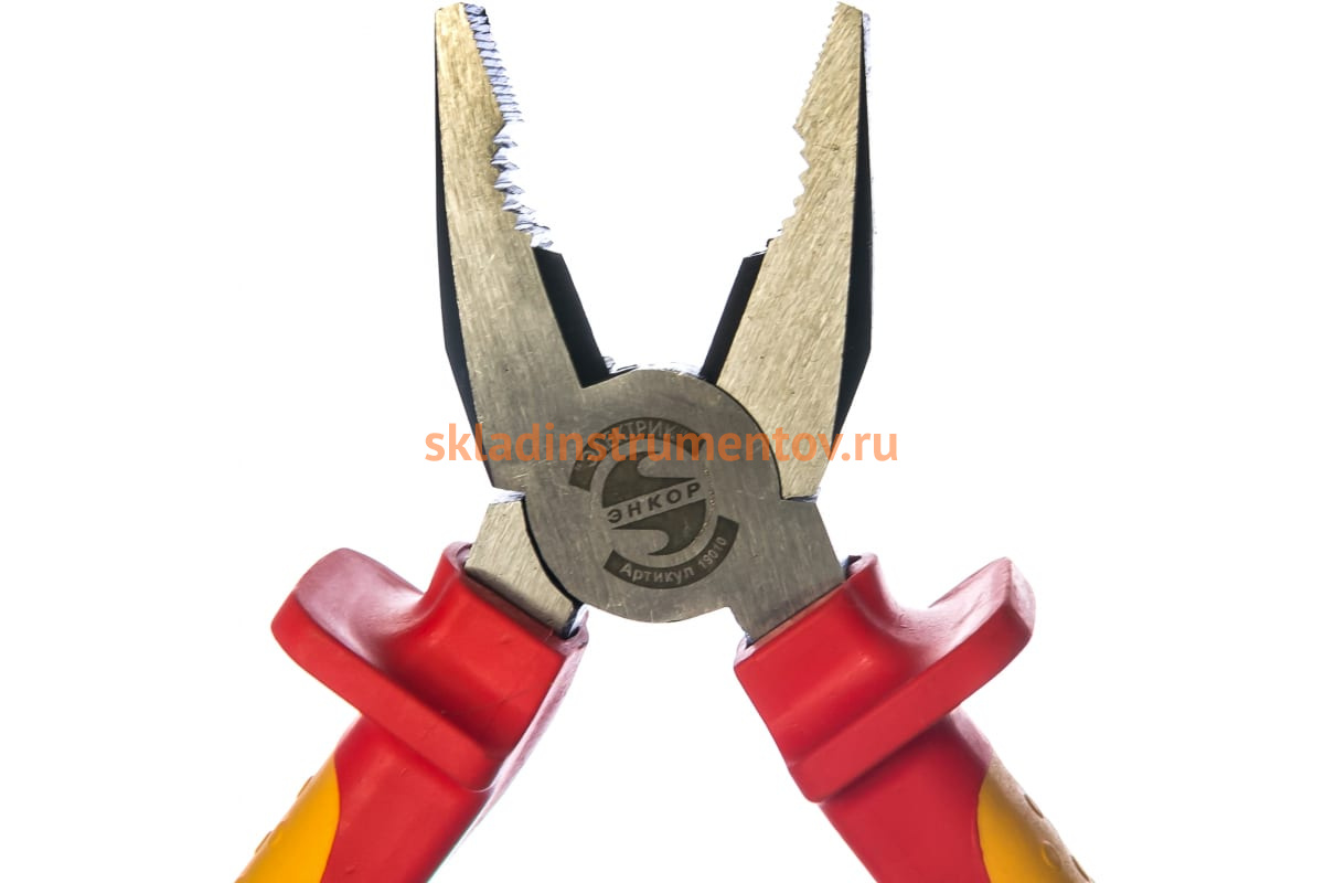 Диэлектрические универсальные плоскогубцы Энкор, 150мм 19010 предназначены для работы с проводкой и другим оборудованием, находящимся под напряжением до 1000 Вольт, благодаря изолирующим рукояткам, выполненным из эластомера TPR. Губки инструмента изготовлены из стали и закалены.