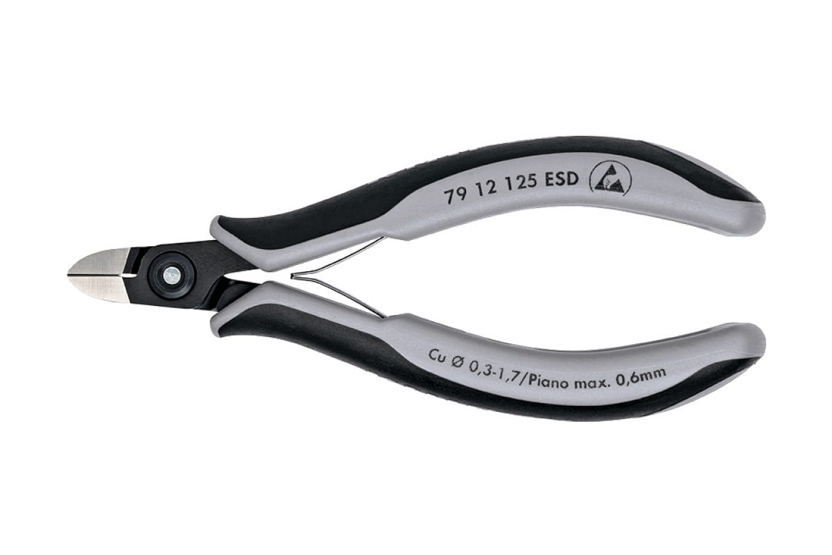 Прецизионные бокорезы для электроники KNIPEX KN-7912125ESD - надежный инструмент, изготовленный из хромованадиевой шарикоподшипниковой стали. Предназначены для резки твердой проволоки и рояльной струны. Бокорезы имеют продолжительный срок эксплуатации без потери рабочих свойств. Двойная пружина служит для равномерного и плавного раскрытия инструмента.
