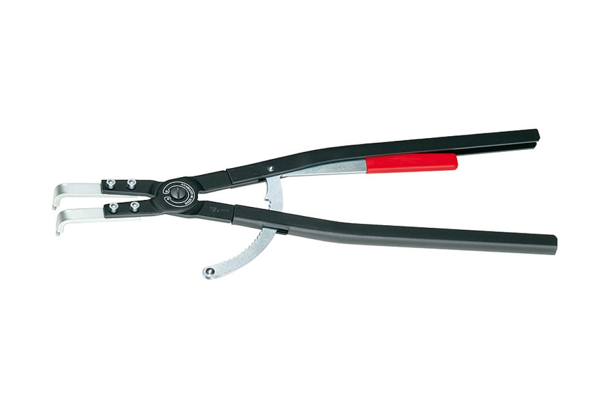 Щипцы для стопорных колец KNIPEX KN-4420J61 оснащены съемными изогнутыми под углом 90о наконечниками. Предназначены для снятия внутренних стопорных колец в отверстиях диаметром 252 - 400 мм. В конструкции предусмотрен разъемный блокировочный механизм. Высокопрочный корпус из катаной стали выдерживает большие механические нагрузки. Дополнительную твердость и коррозионную стойкость изделию придает черное порошковое покрытие.