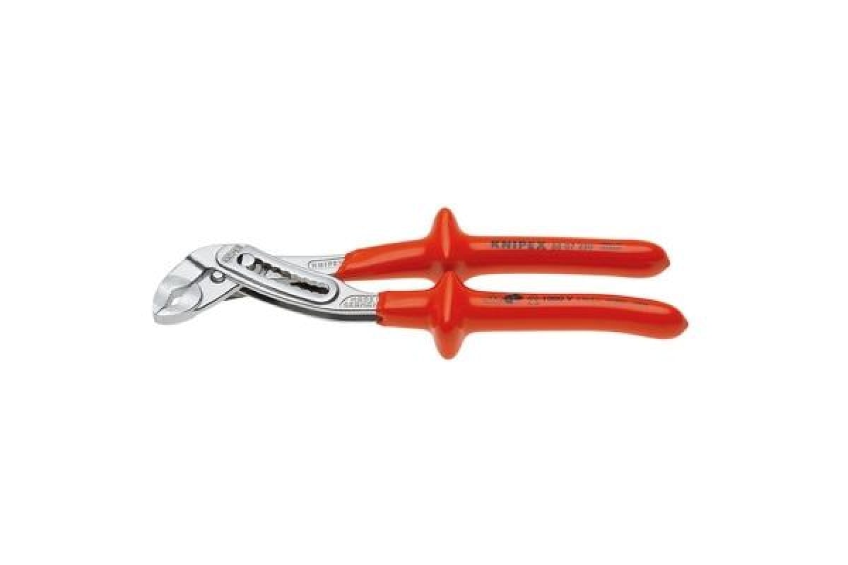 Переставной ключ KNIPEX Alligator KN-8807250 - универсальный ручной инструмент с высокой износоустойчивостью. Подходит для выполнения работ под напряжением до 1000 В. Надежный захват детали обеспечивает прочная рабочая часть с закаленными зубцами. Удобство в эксплуатации благодаря эргономичным рукояткам. На рукоятках имеются ограничители, которые не позволяют руке скользить во время работы.