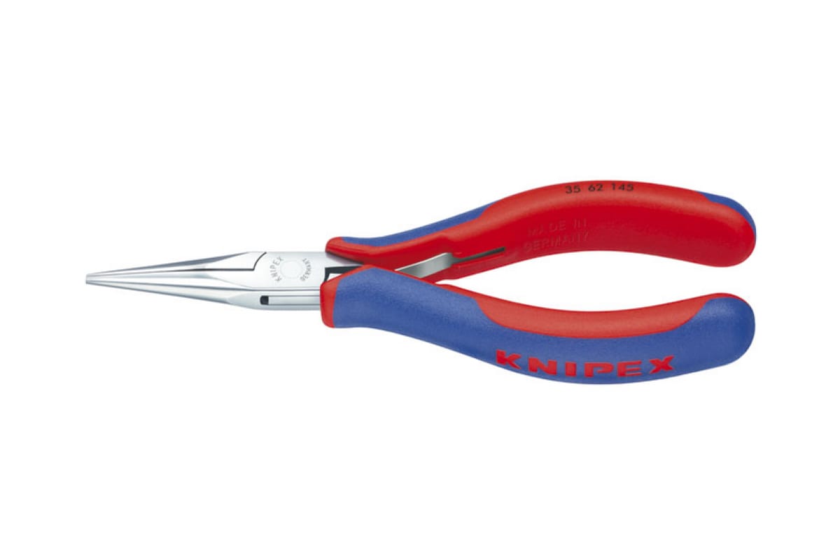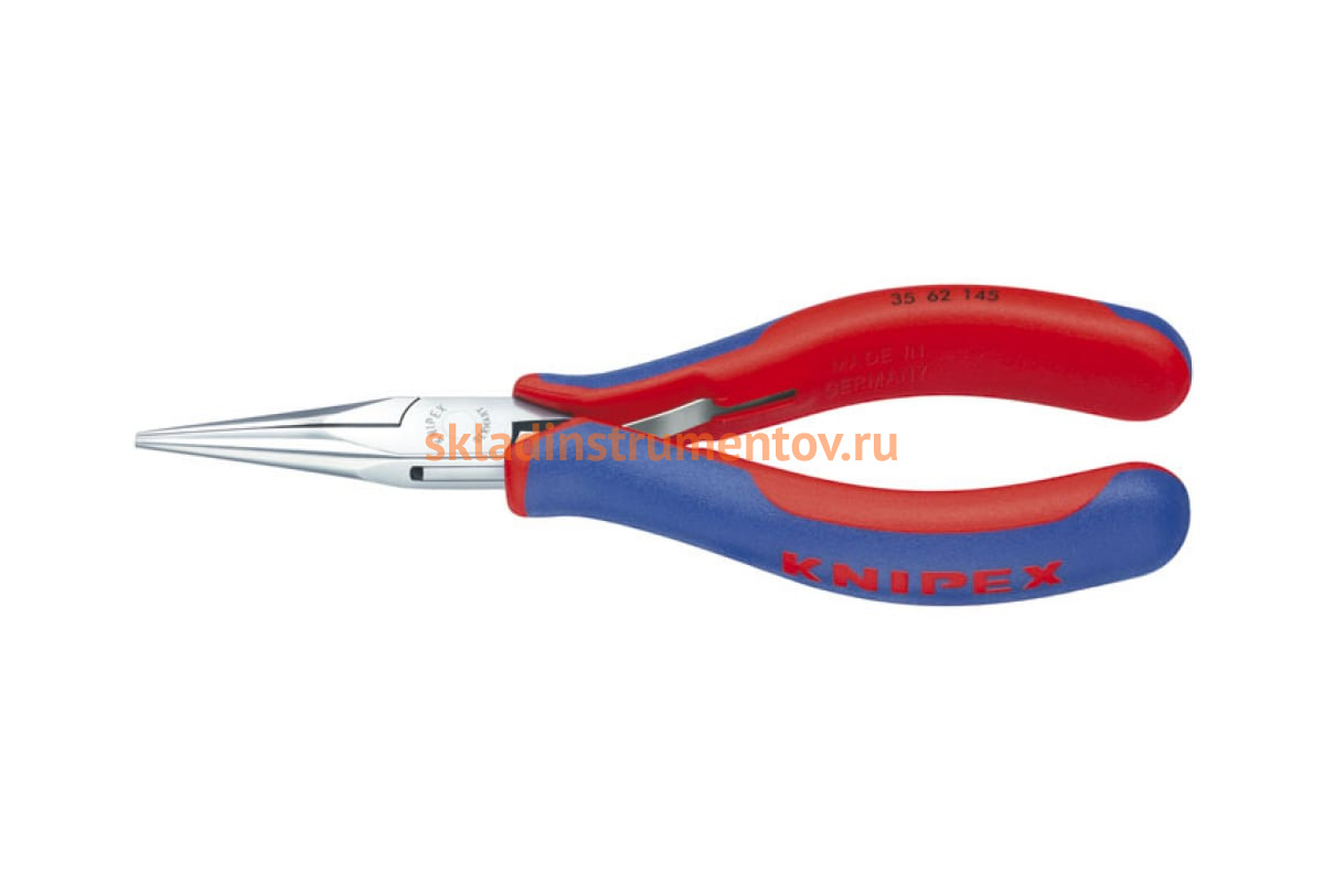 Захватные плоскогубцы для электроники KNIPEX KN-3562145SB предназначены для самых тонких монтажных работ. Гладко отшлифованные захватные губки не оставляют следов на поверхности деталей. Инструмент изготовлен из качественной стали, благодаря чему выдерживает большие нагрузки. Рабочая поверхность зеркально отполирована, что в сочетании с тонкой масляной пленкой предотвращает коррозию и возникновение трещин. Двухкомпонентные чехлы на рукоятках препятствуют скольжению руки во время работы.