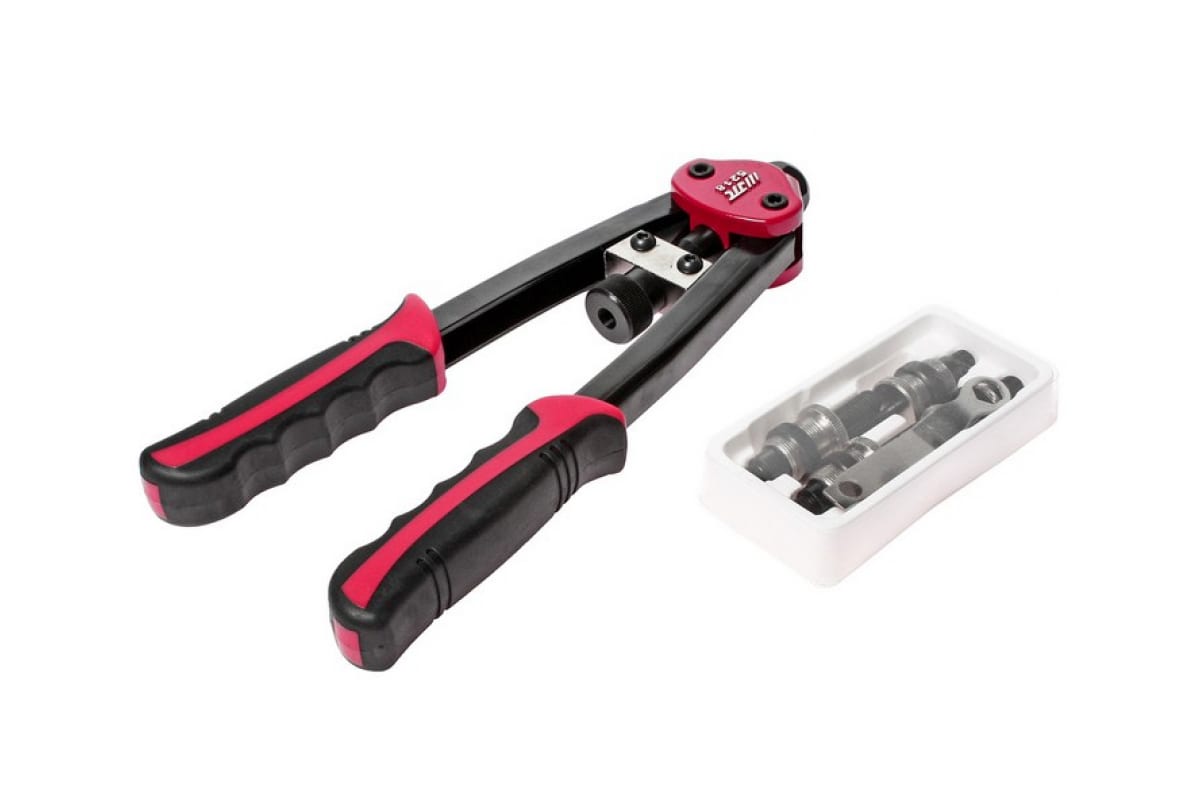 Ручной заклепочник, резьбовой, 325мм JTC-5218N - это компактный инструмент, с помощью которого можно быстро и аккуратно установить заклепки в металлоконструкцию автомобиля. Приспособление исключительно просто в использовании - для работы с ним не обязательно обладать какими-либо особыми знаниями или умениями. Заклепочник представляет из себя устройство рычажного типа, позволяющее оператору прилагать больше усилий при соединении тонкостенных профилей или листовых деталей.