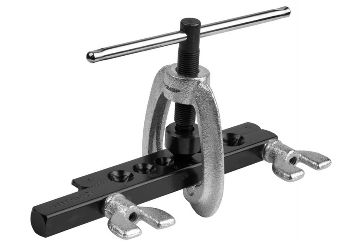 Развальцовка Зубр МАСТЕР для труб из цветных металлов с толщиной стенки до 1 мм, 4; 4,75; 6; 8; 10; 12; 15 мм 23617-15 предназначена для эксплуатации во время монтажа систем водоснабжения, отопления и кондиционирования, а также гидравлических систем.