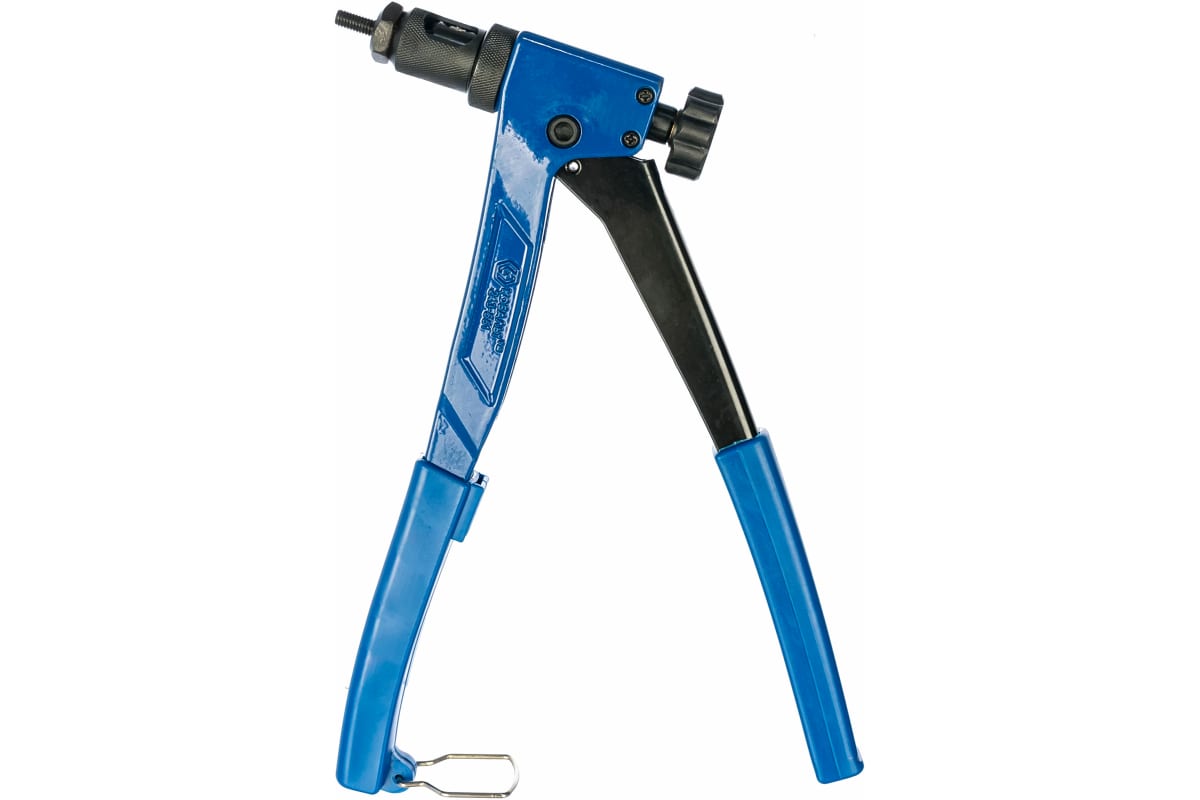 Заклепочник для резьбовых заклепок КОБАЛЬТ 250 мм 243-561 имеет алюминиевый литой корпус и обрезизенные рукоятки. Инструмент скрепляет листовые материалы при помощи резьбовых заклепок, которые выполнены из алюминия, латуни или нержавейки. Длина заклепочника - 250 мм.