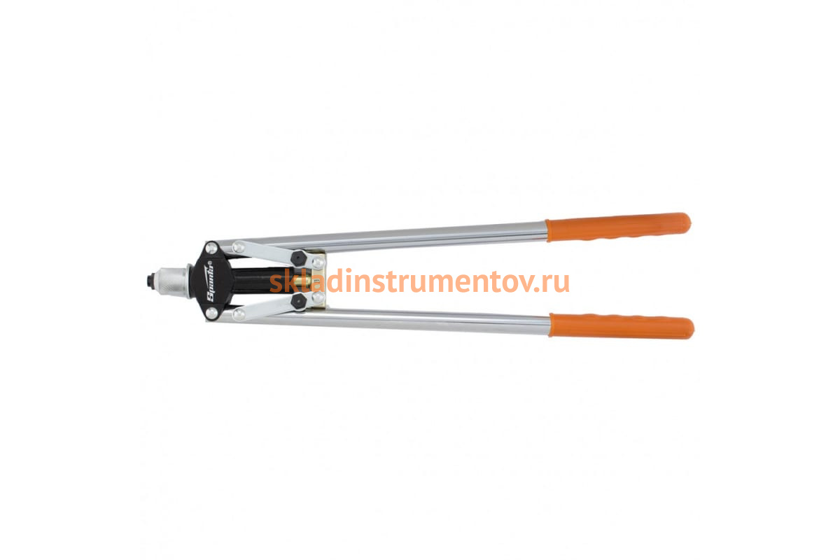 Усиленный двуручный заклепочник 600 мм SPARTA 405405 - надежный инструмент для соединения деталей или слоев материала. Используется с вытяжными заклепками. Эргономичные рукоятки обрезинены для надежного удержания инструмента. Благодаря регулируемой насадке в данный заклепочник можно устанавливать заклепки разных диаметров. Диаметр используемых заклёпок: 2.4, 3.2, 4.0, 4.8 мм.