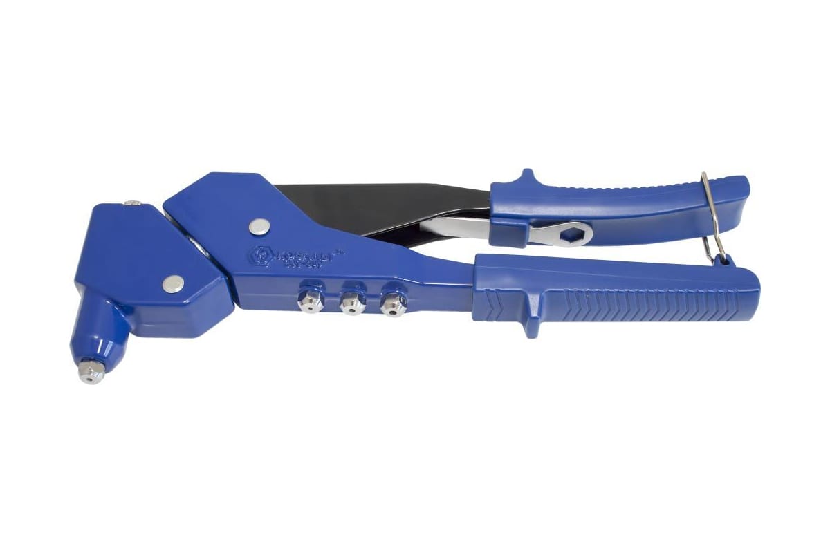 Заклепочник КОБАЛЬТ 300 мм, поворотный 0-360 градусов 243-509 обладает литым алюминиевым корпусом, поворотной головкой на 360° и прорезиненными рукоятками. Инструмент предназначен для клепания листовых материалов при помощи вытяжных алюминиевых заклепок. Для данного заклепочника подойдут заклепки размером - 2,4/3,2/4,0/4,8 мм.