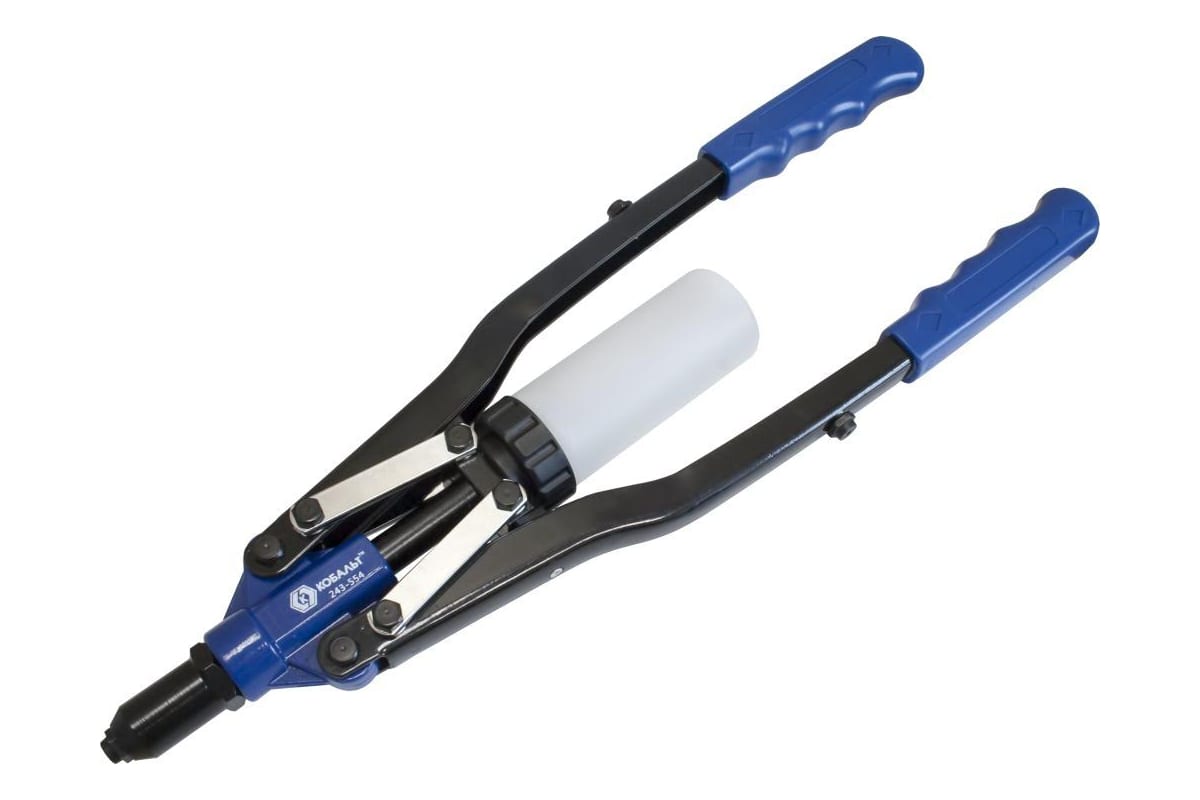 Заклепочник КОБАЛЬТ 450 мм двуручный 243-554 применяется для клепания листовых материалов с использованием вытяжных заклепок из алюминия, стали, нержавейки. Конструкция выполнена из литого алюминия и обладает прорезиненными рукоятками. Заклепочник оснащен контейнером для сбора стержней.