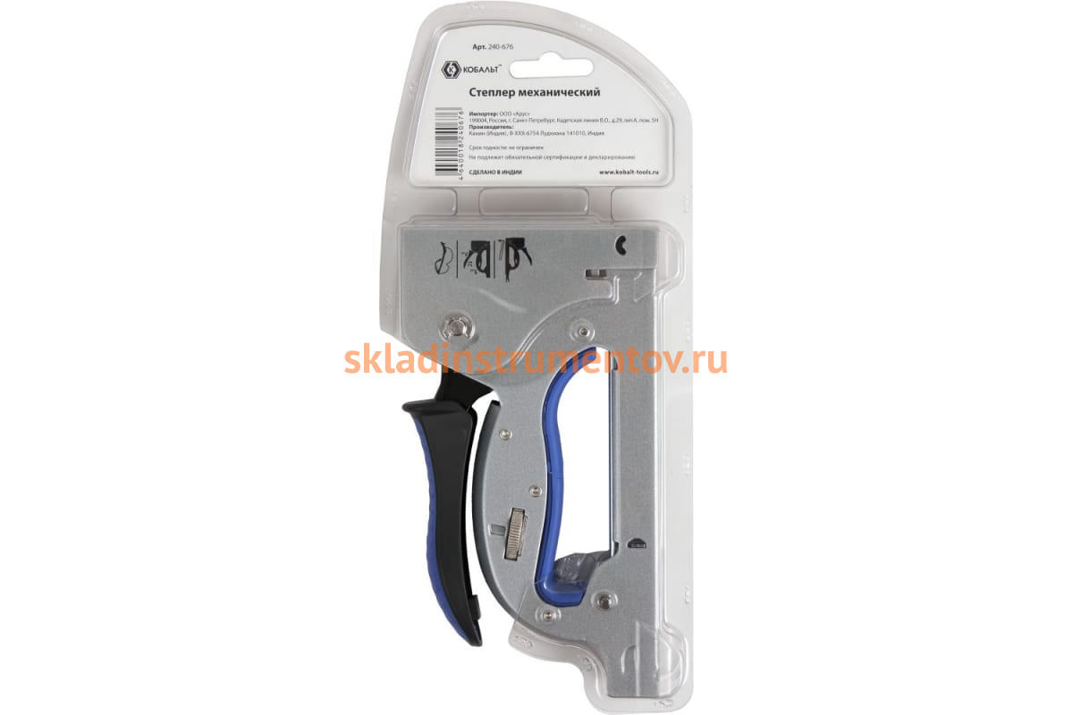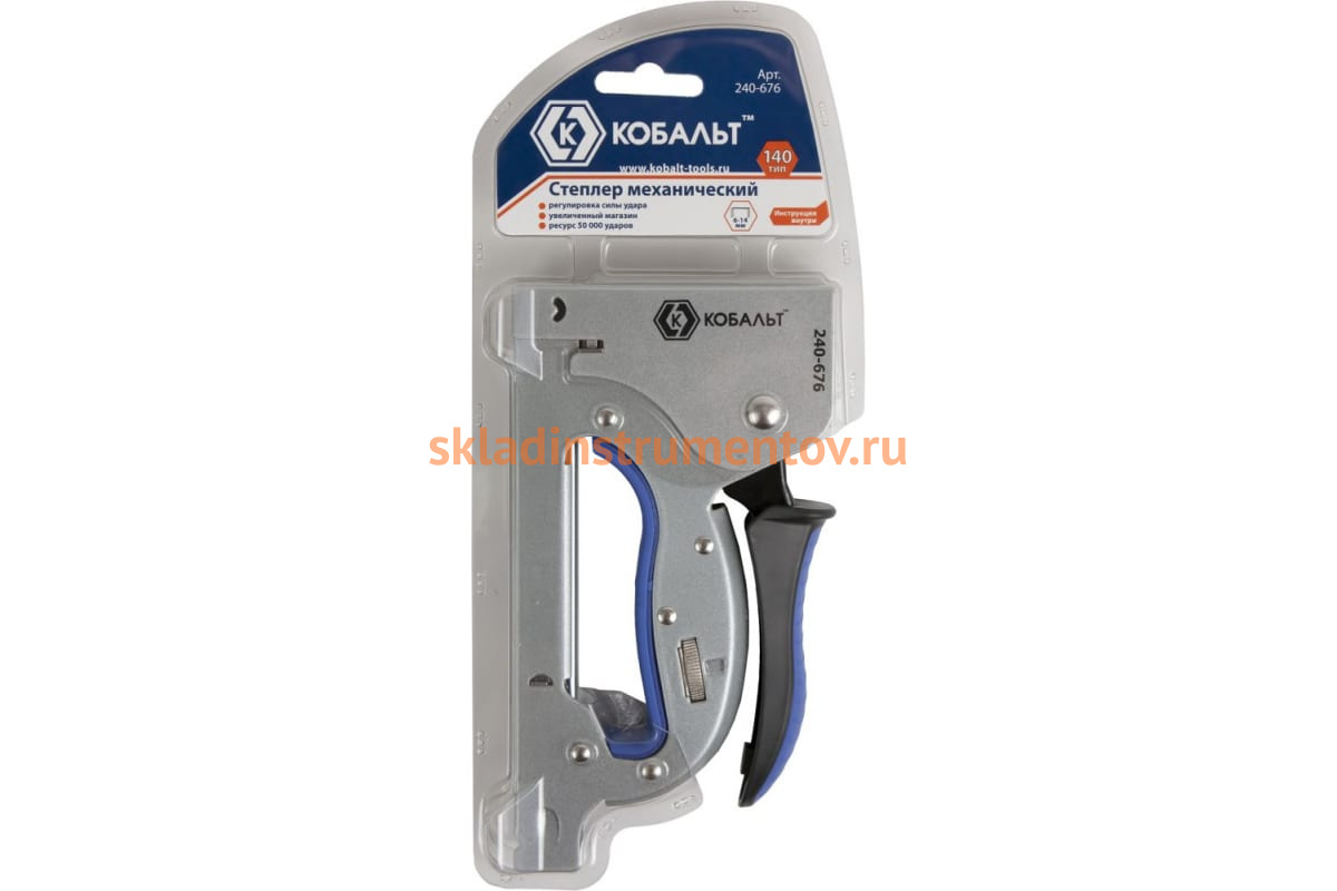 Механический степлер КОБАЛЬТ 240-676 подходит для закрепления различных материалов, таких как: пластик, гипсокартон, ДСП. Предусмотрена регулировка силы удара, которая необходима для работы с материалами различной твердости. В качестве расходных материалов используются скобы типа 140.